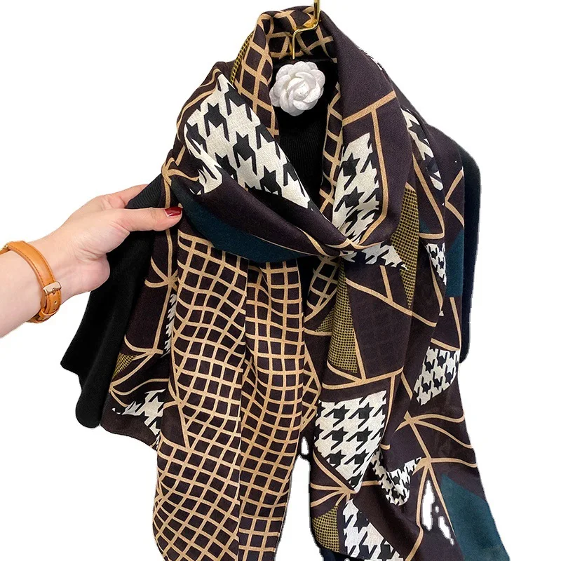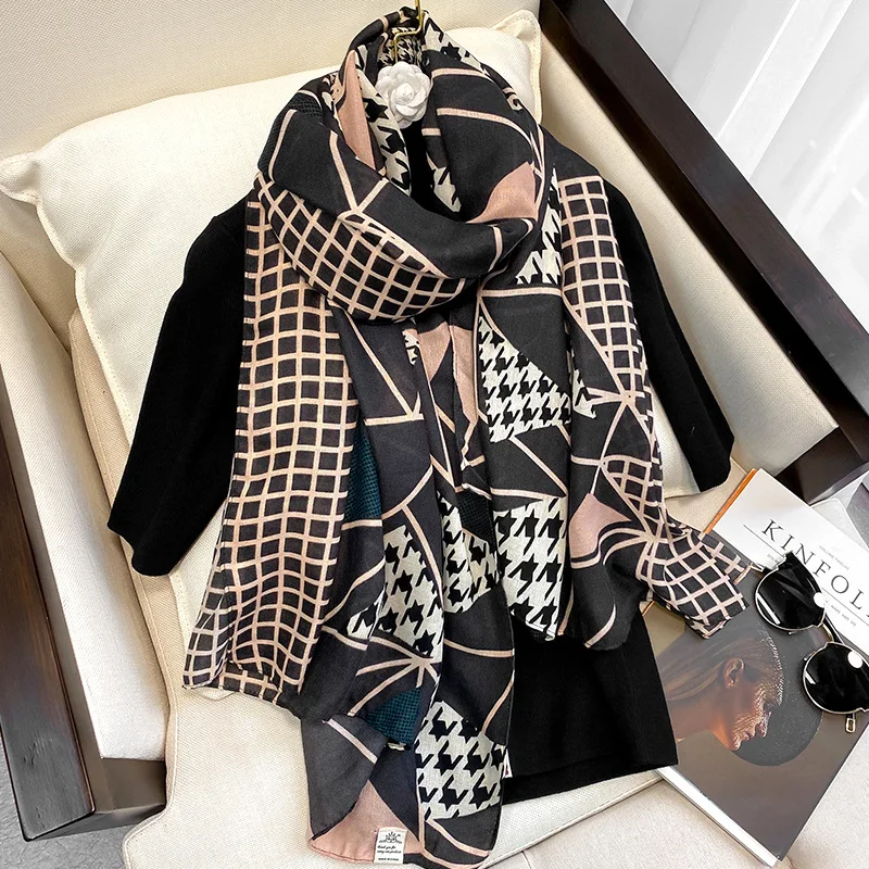 Шарф женский, хлопковый, с принтом гусиная лапка, осень-весна, 2020