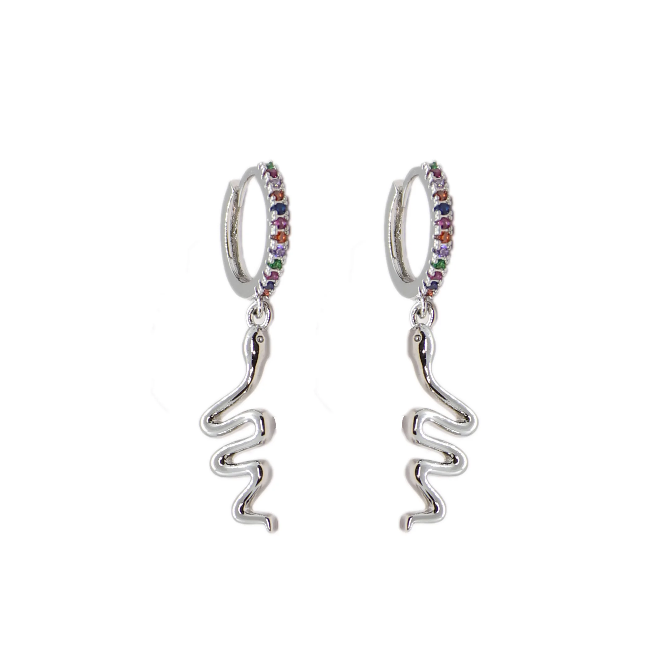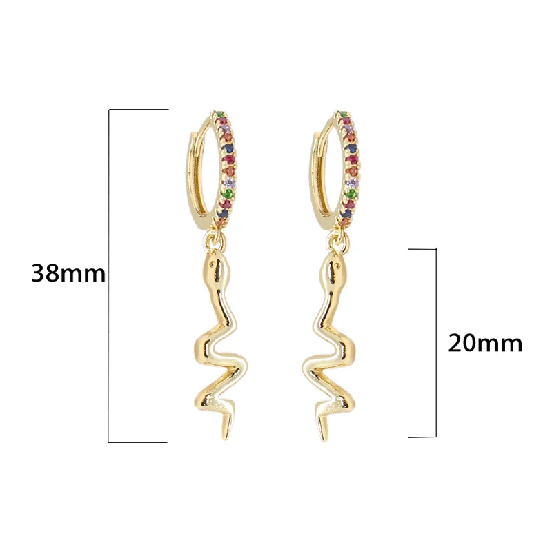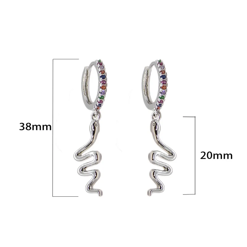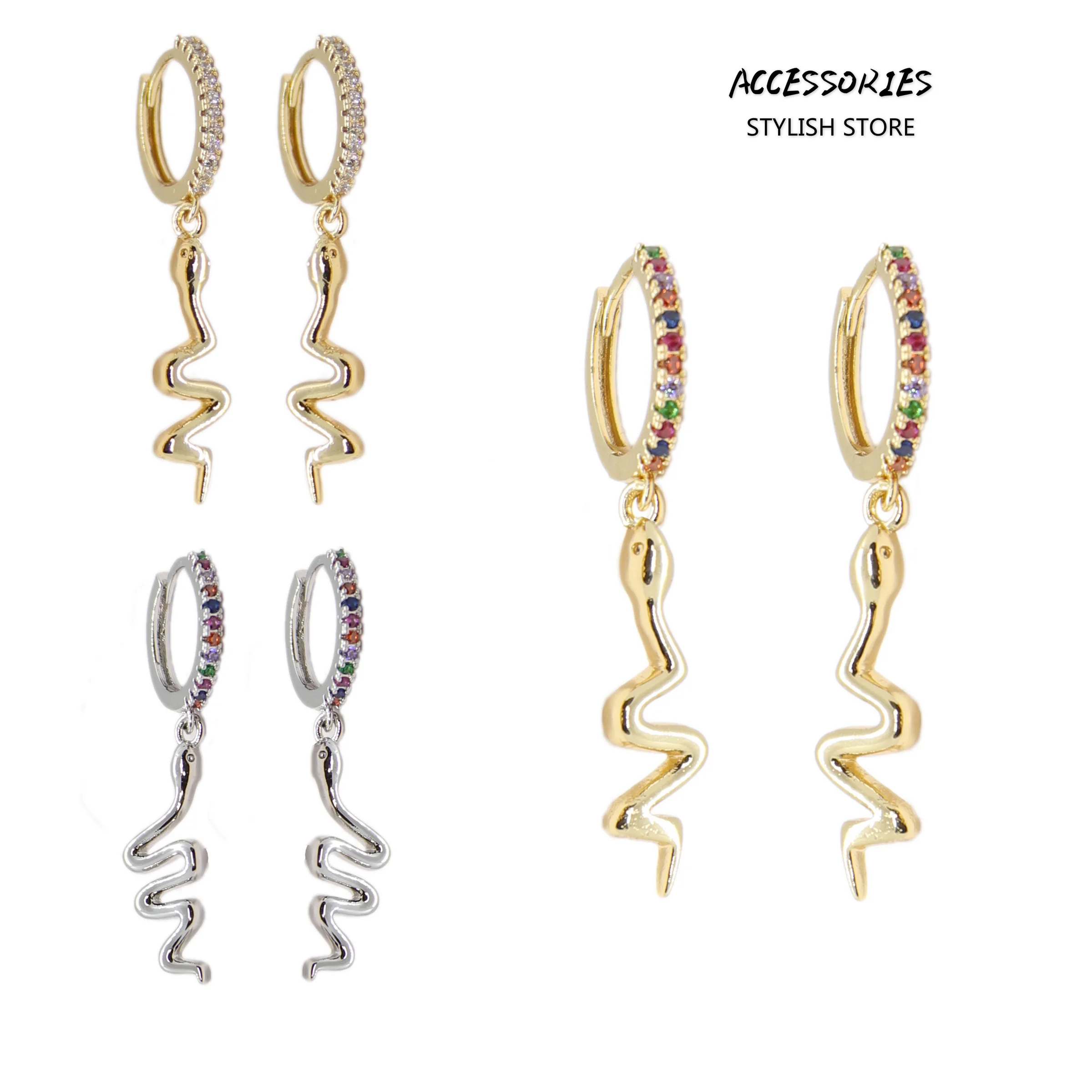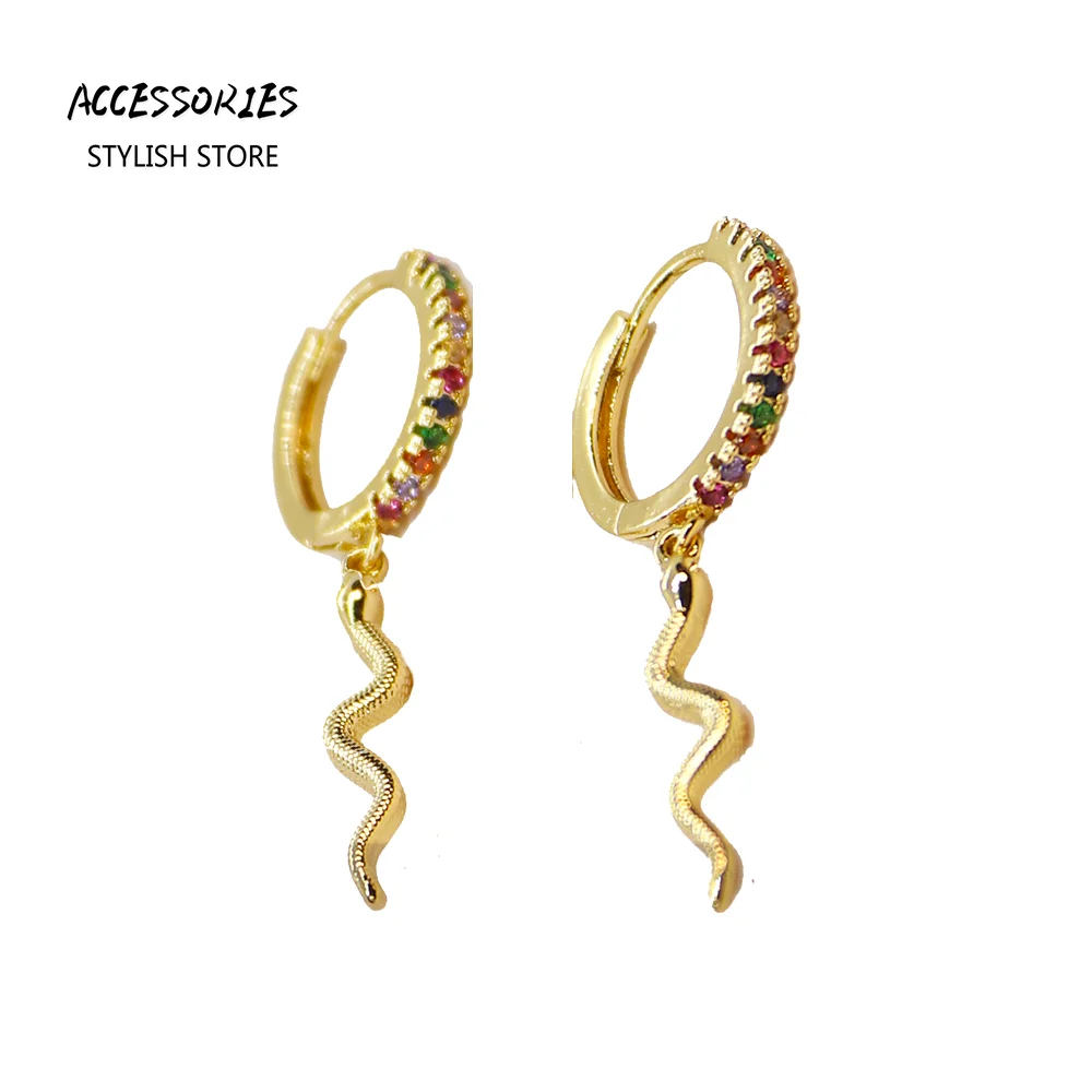 Позолоченные Заполненные серьги серьга со змеями для женщин, с разноцветными с украшением в виде кристаллов, трендовая Новинка маленькие серьги