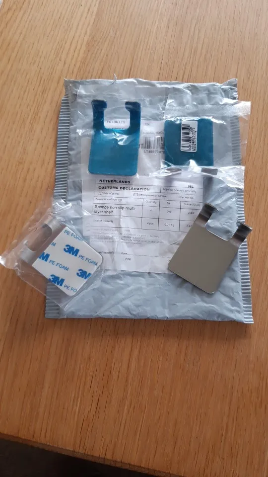 Быстрая доставка в Нидерланды: в течение указанного времени. Точно так же, как показано в рекламе. Они имеют синее покрытие для защиты изделия от царапин. Это большой плюс! Каждая вещь была упакована отдельно. Точный размер для бритв, так как я купил их для этого использования. Поставляется в пузырчатой упаковке. У него есть боковая клейкая сторона (см. Фото), но я все еще должен испытать, если это будет держать в руке при использовании в душе! Примечание: края изделия немного остры-я бы не дал их в детскую руку! Кроме того, я рад, что товар был бы рекомендован, а также для быстрой отправки и доставки.