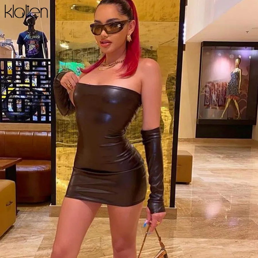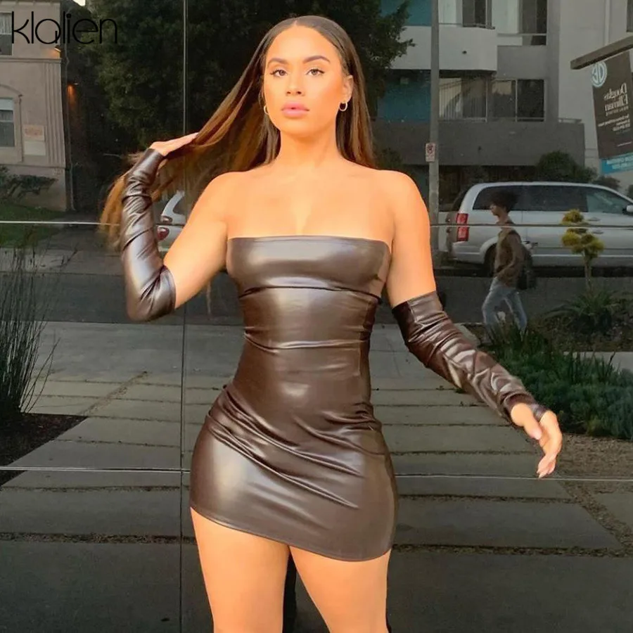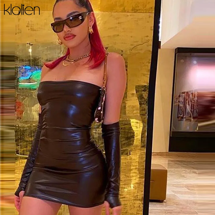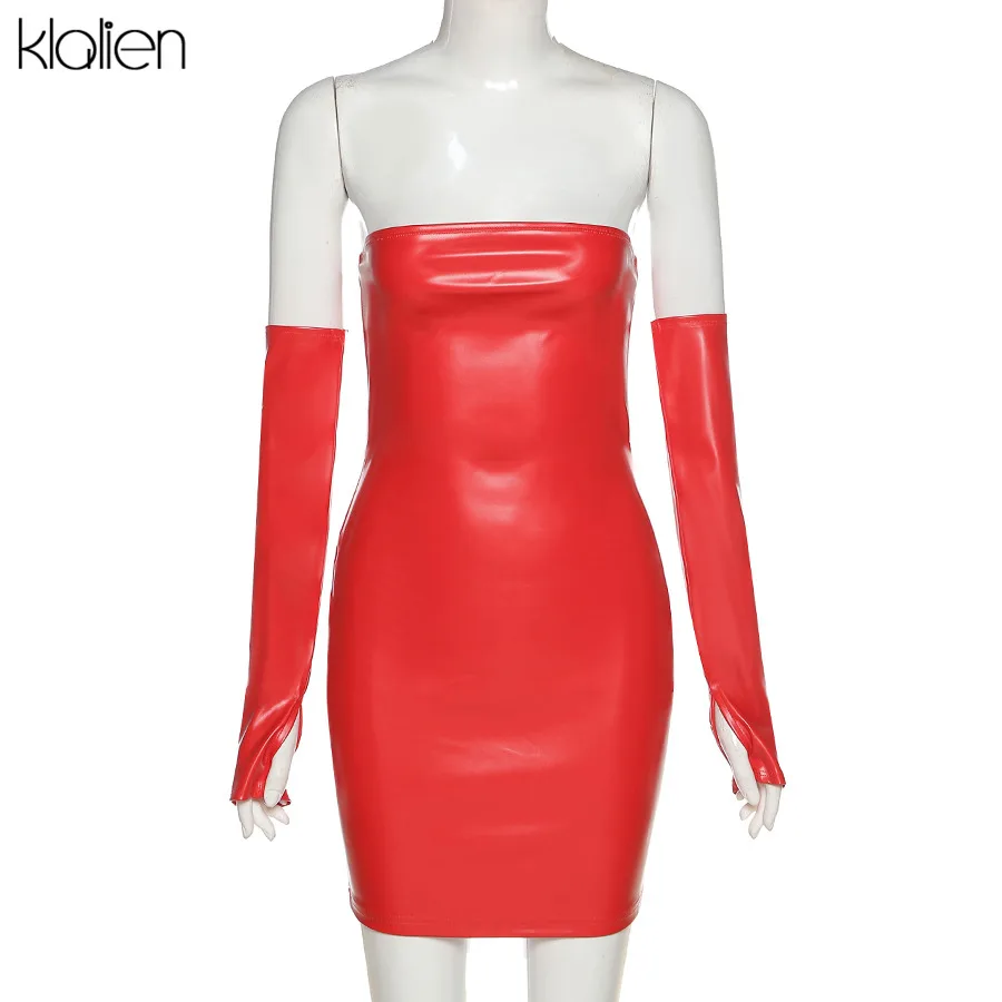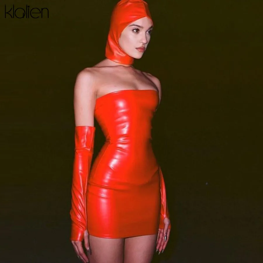 Соблазнительное платье из искусственной кожи с перчатками, вечерние...
