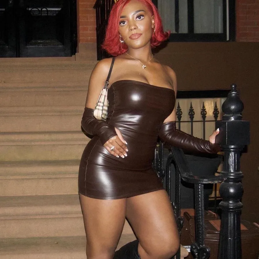 Женское кожаное платье Nibber Y2K, вечернее платье с открытой спино...