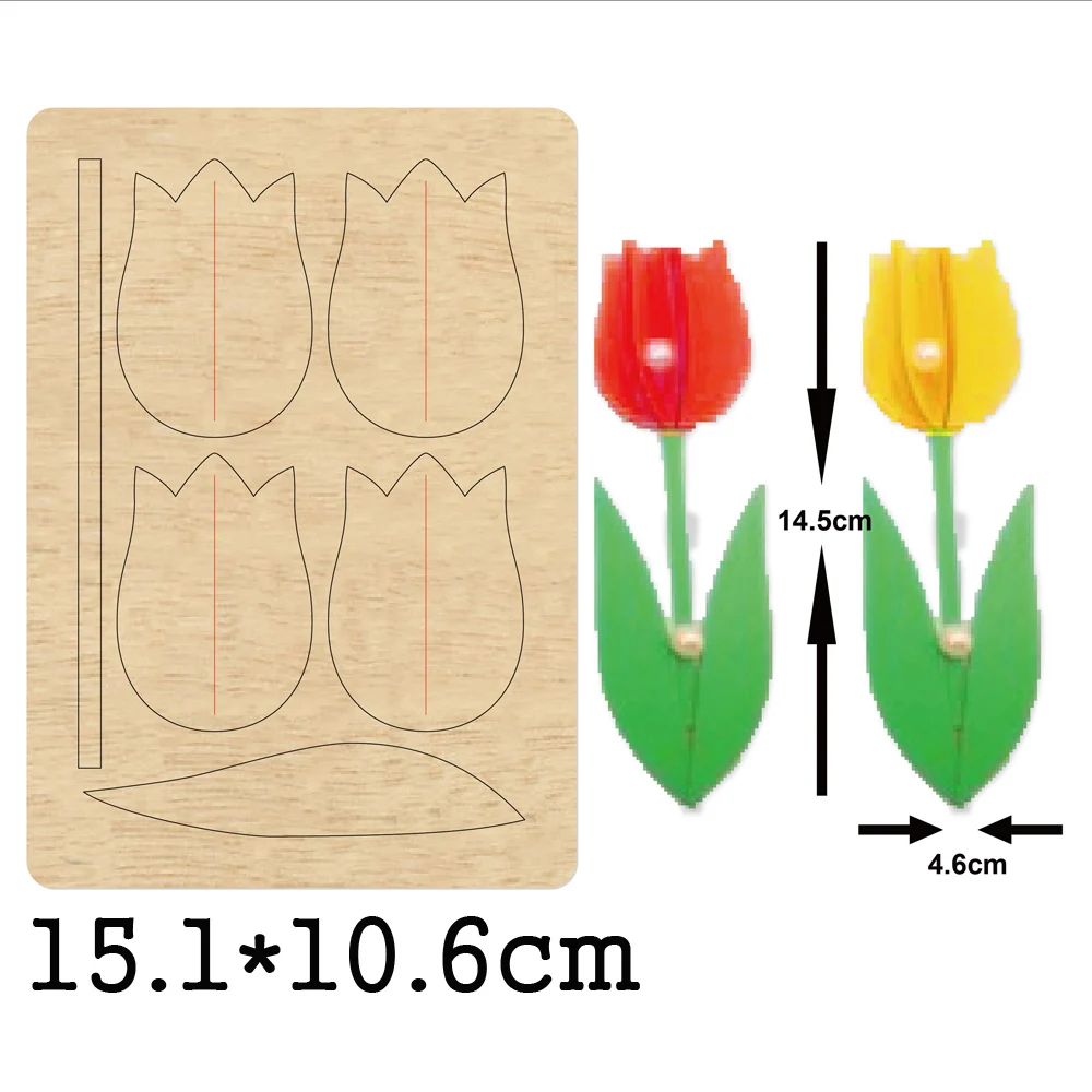 Сделай Сам цветок тюльпана для резки дерева умирает 2021 новый лист Цветочный Ремесло Деревянные под давлением подходит для стандартных вырубных станков на Рынок