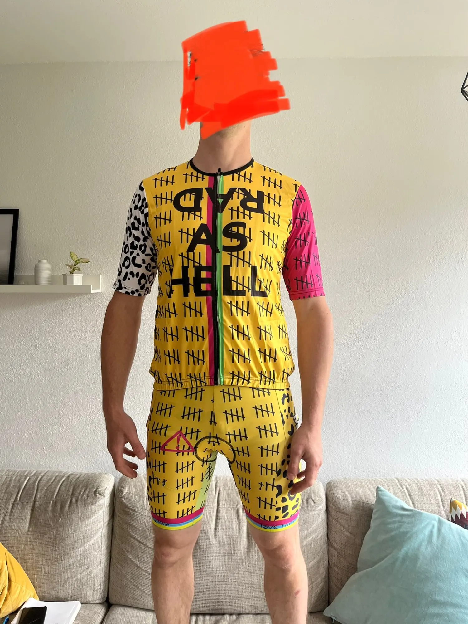 По сравнению с оригиналом, здесь не так много общего. Шорты имели совершенно другой цвет (я получил частичное возмещение), но, по крайней мере, размер был в порядке. (Я не буду носить их, потому что я не люблю colorway и дал их в благотворительный магазин) другой основной проблемой является посадка рубашки. Большинство людей, ездивших на велосипеде, стройны, поэтому вам нужна приталенная рубашка. И даже если у вас большой живот, эти волокна сгибаются, даже самые дешевые. Что один путь слишком большой. Я думаю, что длина в порядке, но мой вес 90 кг и рост 188 см, а эта рубашка слишком свободная. У меня обычно есть Европейский большой во всем. Я думаю, что это выглядит довольно дерьмовым образом. Он точно в середине обычной гоночной рубашки и трикотажа mtb, но с плотной посадкой на руках. Я думаю, если вы около 185, нет мышц на обеих руках, а ваш вес составляет около 120 кг, это может подойти вам «красиво» или в случае, если вам понравится морщинистый вид. Я не знаю.