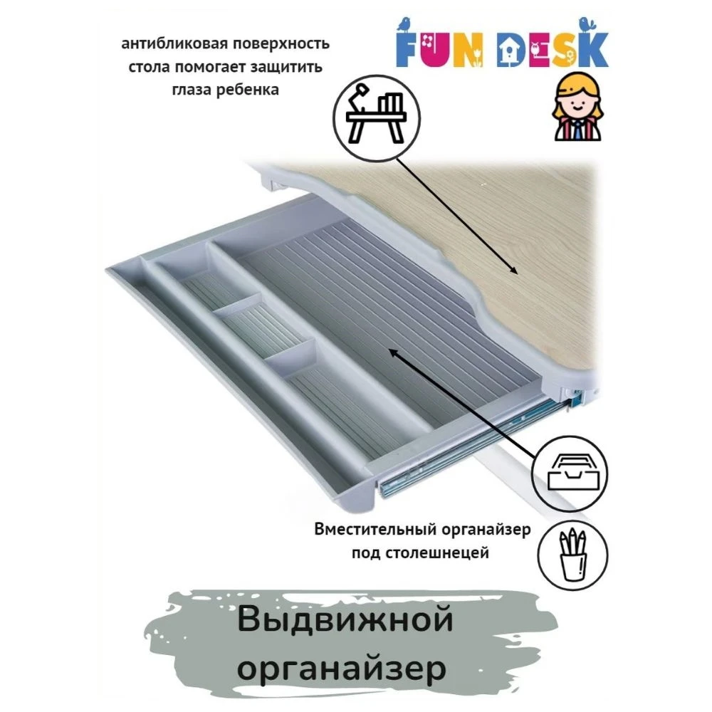 Комплект растущая детская парта стол трансформер растишка для школьника регулировка высоты по росту ребенка FunDesk Piccolino