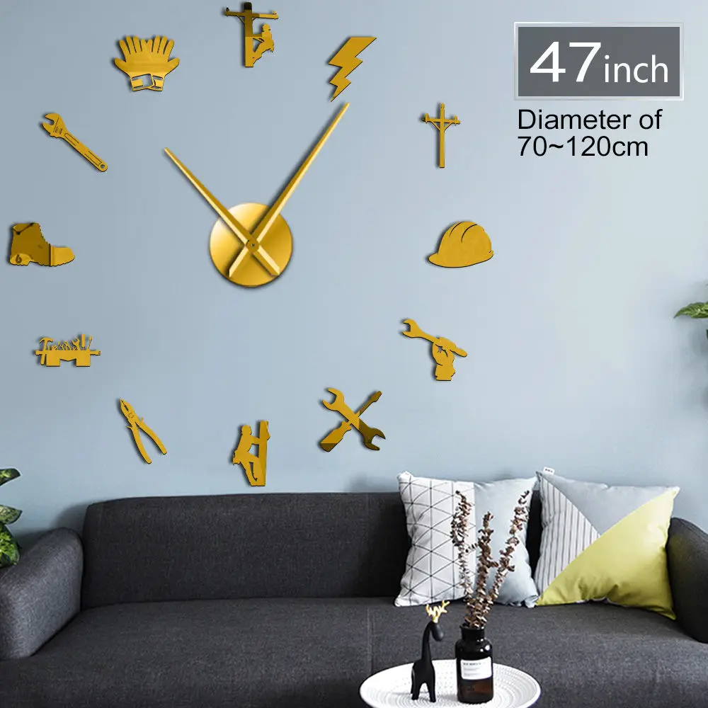Настенные часы 3D сделай сам, акриловые зеркальные украшения для электромонтажа, многоповерхностные украшения для Lineman