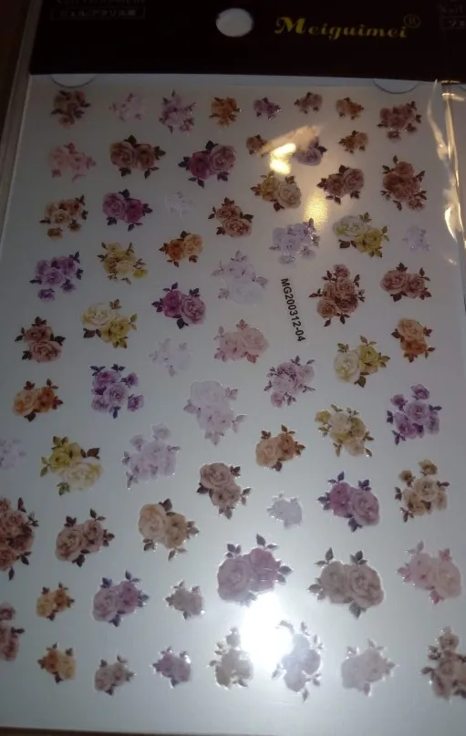 Наклейки по цвету, как на фото! Цветы действительно яркие и сочные! Качество печати на высоте: чёткое, без смазанности! Наклейки оптимально подойдут под среднюю и более длину ногтей! Продавец оперативно отправил заказ с отслеживанием! Посылка с товаром упакована на совесть: ничего не помялось и не порвалось! Продавцу - респект! Рекомендую!