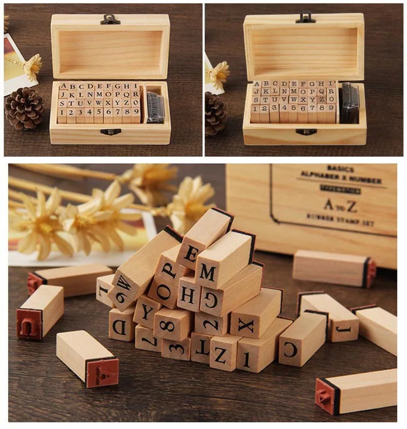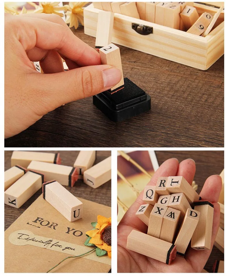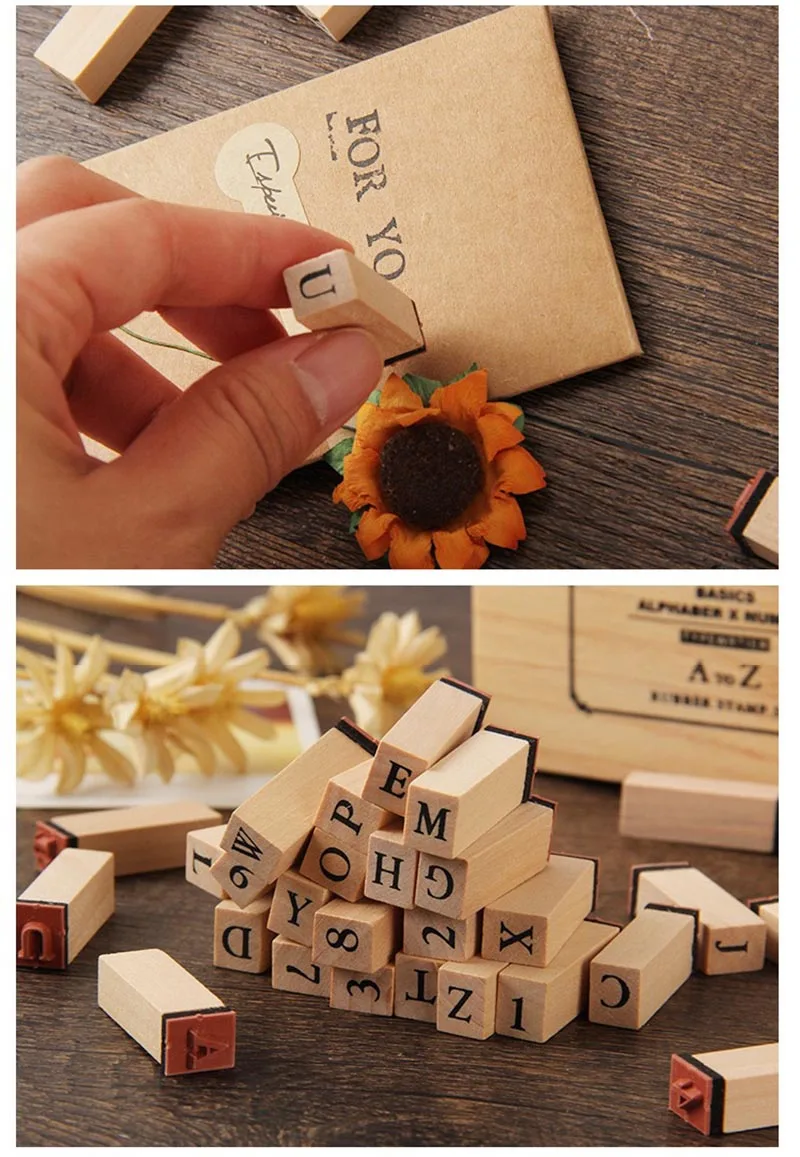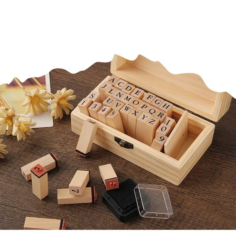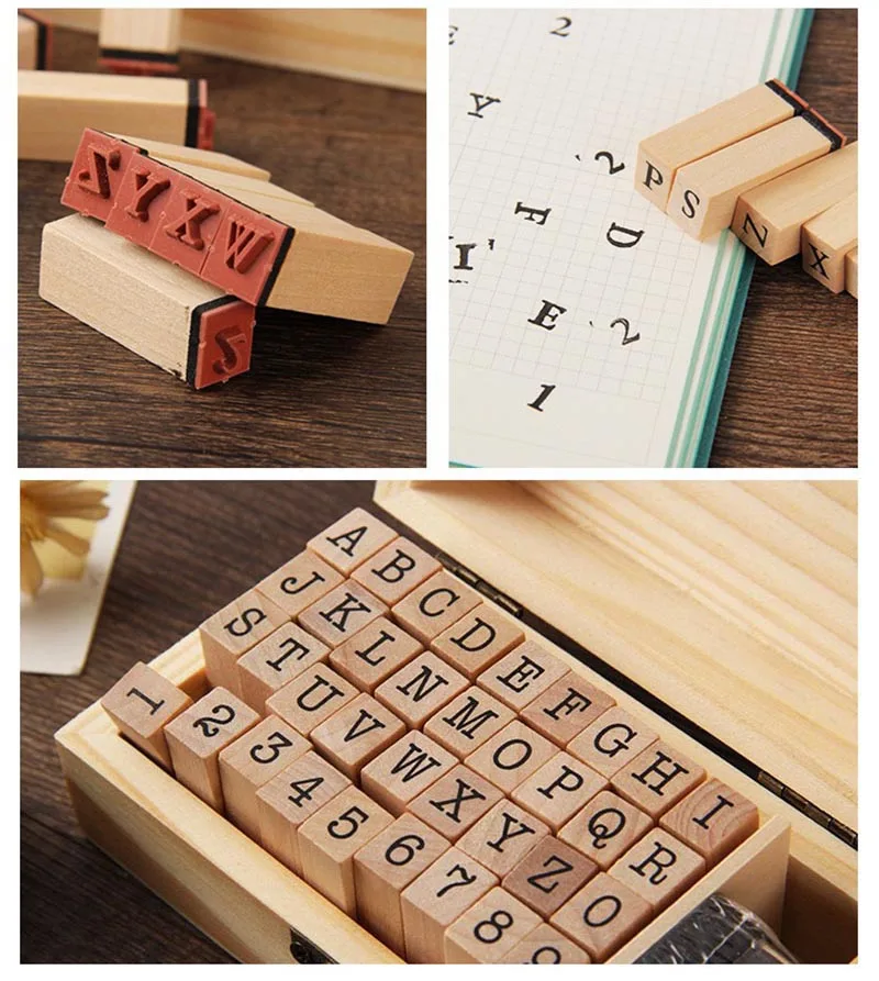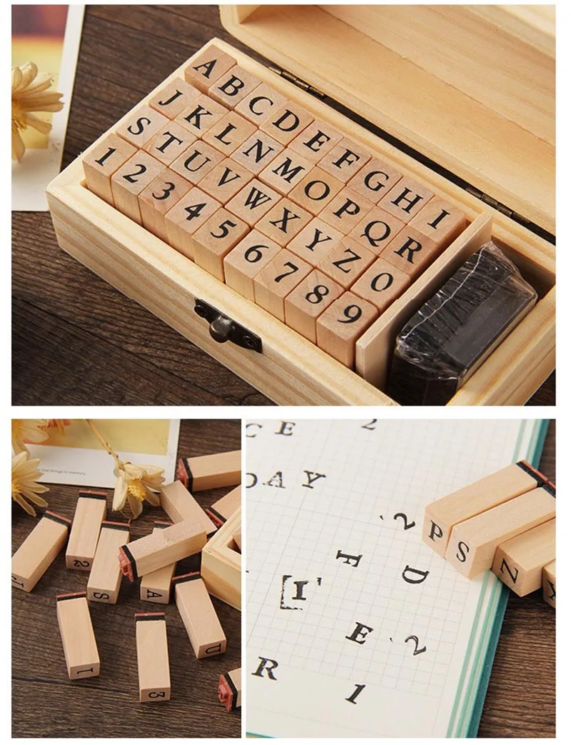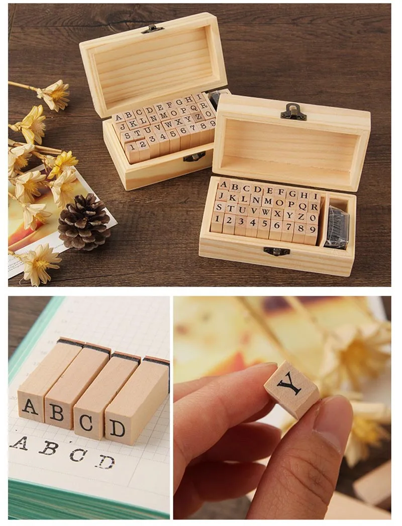 Штамп Деревянный в стиле ретро с цифрами, школьные канцелярские принадлежности, декор для дневника, самодельный штамп деревянный прямоугольный с цифрами и буквами, 1 комплект