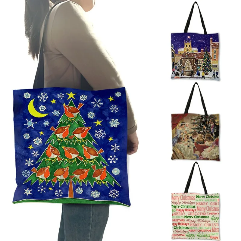 Женская сумка с принтом Merry Christmas, Экологически чистая больша...