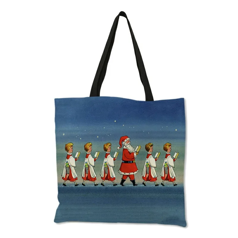 Новое поступление, многоразовые сумки для покупок, для продуктов, креативная женская сумка-тоут с принтом Санта-Клауса, B13209
