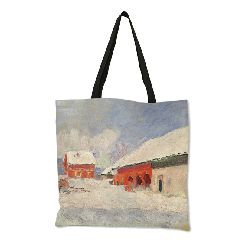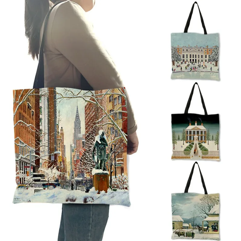 Новое поступление Женская сумка 2020 красивое здание под снегом печать сумка через плечо большие многоразовые хозяйственные сумки B13189