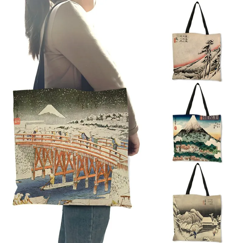 Ретро японская Shogunate Scene Ukiyoe, сумки с принтом горы, женские сумки, женская сумка-шоппер, шоппер, сумка для повседневного использования, B13187