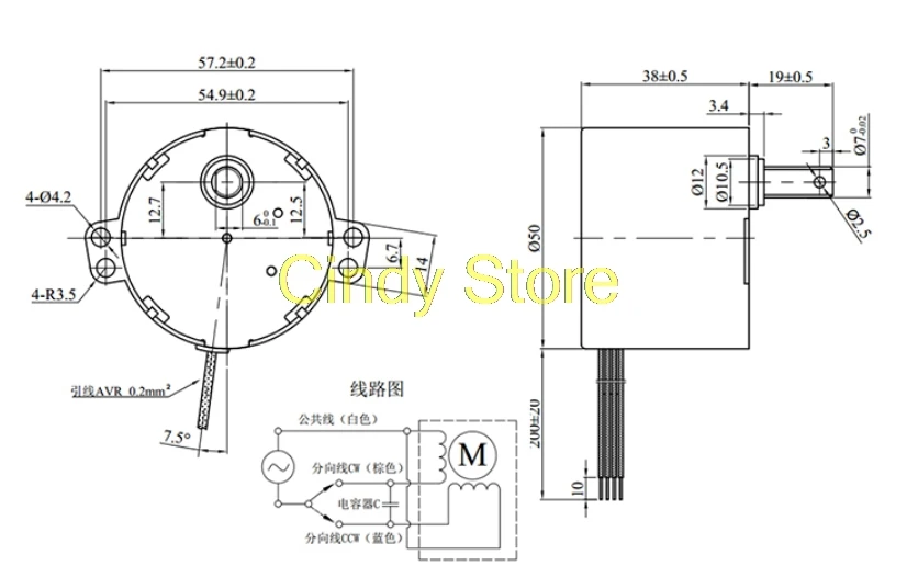 Синхронный двигатель вентилятора 50KTYZ, 7x16 мм, вал 50x38 мм, 220-240 В переменного тока, 50 Гц, 6 Вт, 1 шт.