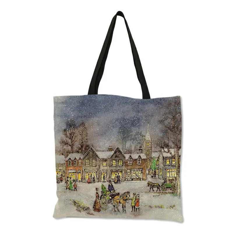 Разноцветная модная женская сумка в европейском стиле с изображением снежного мира 2021, многоразовая складная сумка для покупок B13186