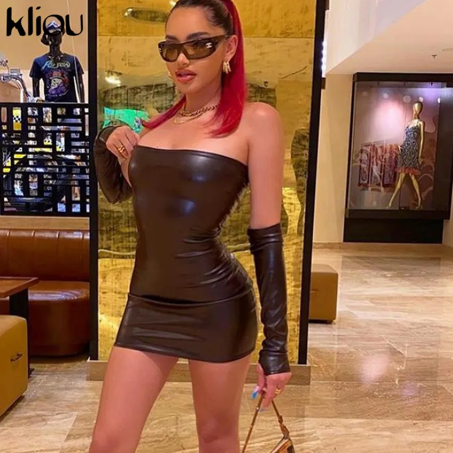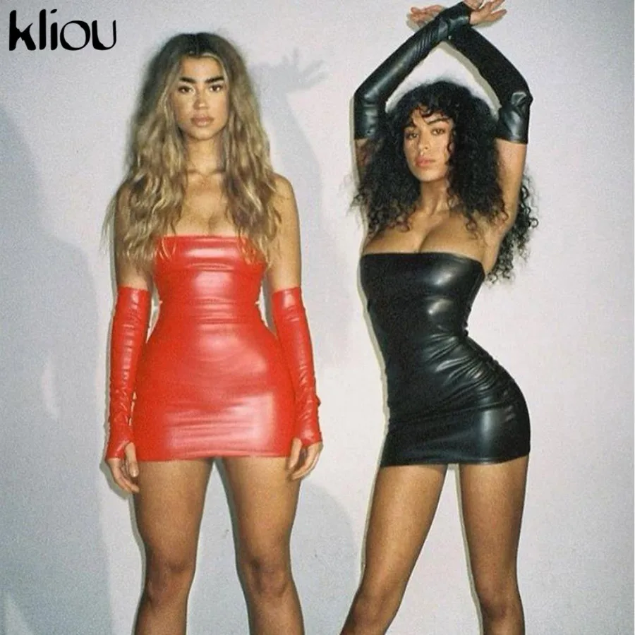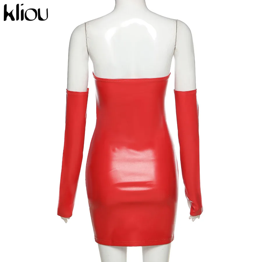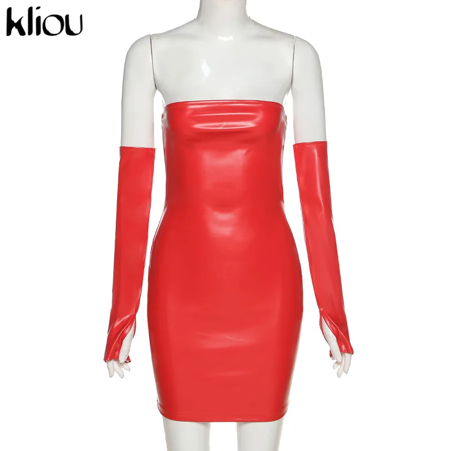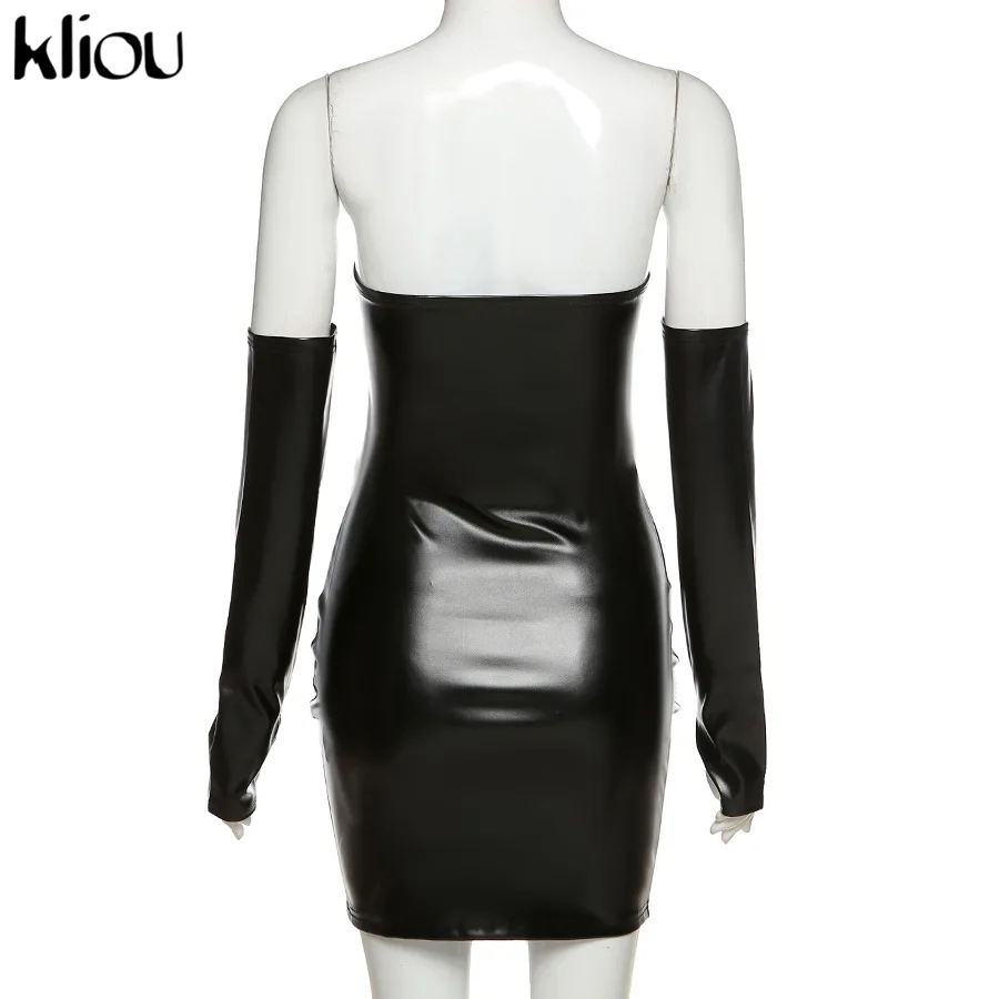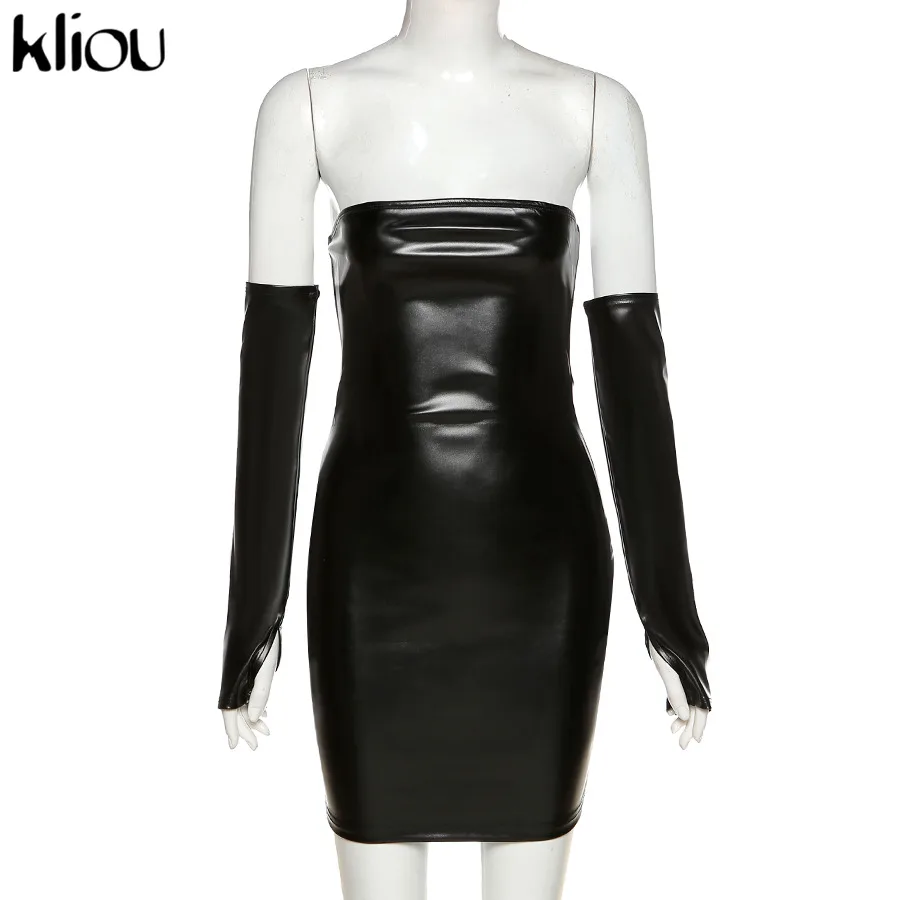 Женское мини-платье с открытой спиной, из искусственной кожи, с перчатками