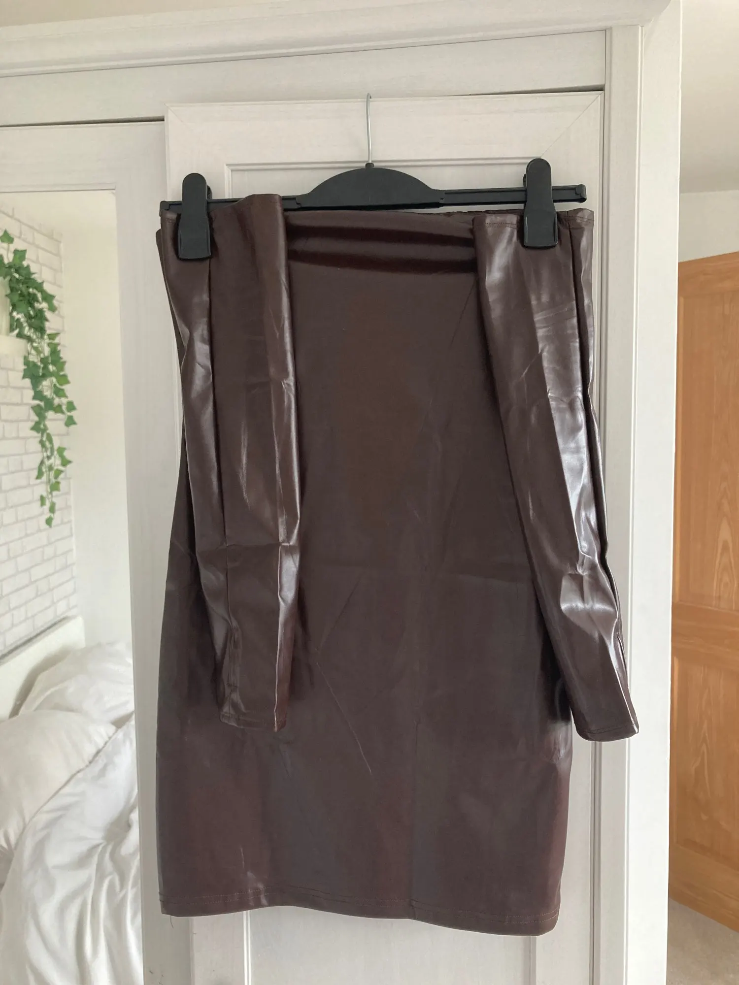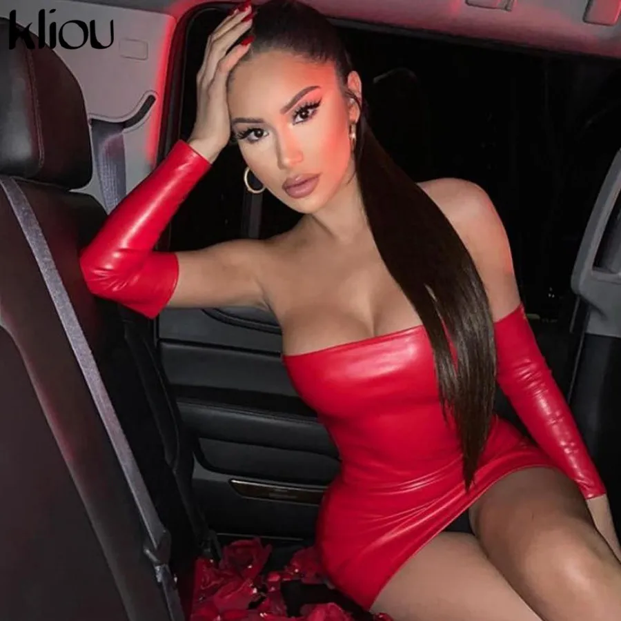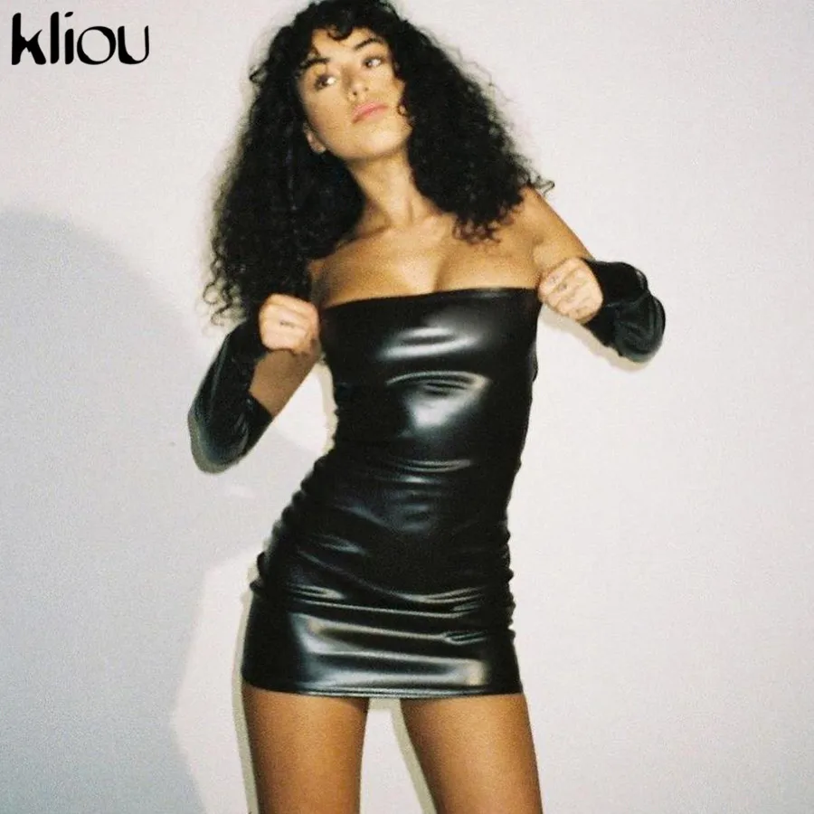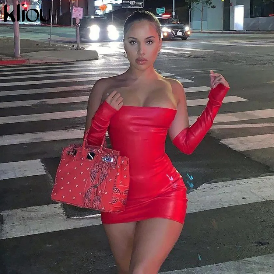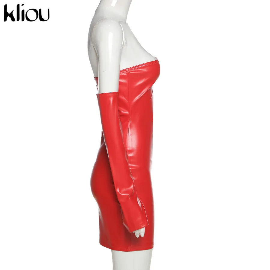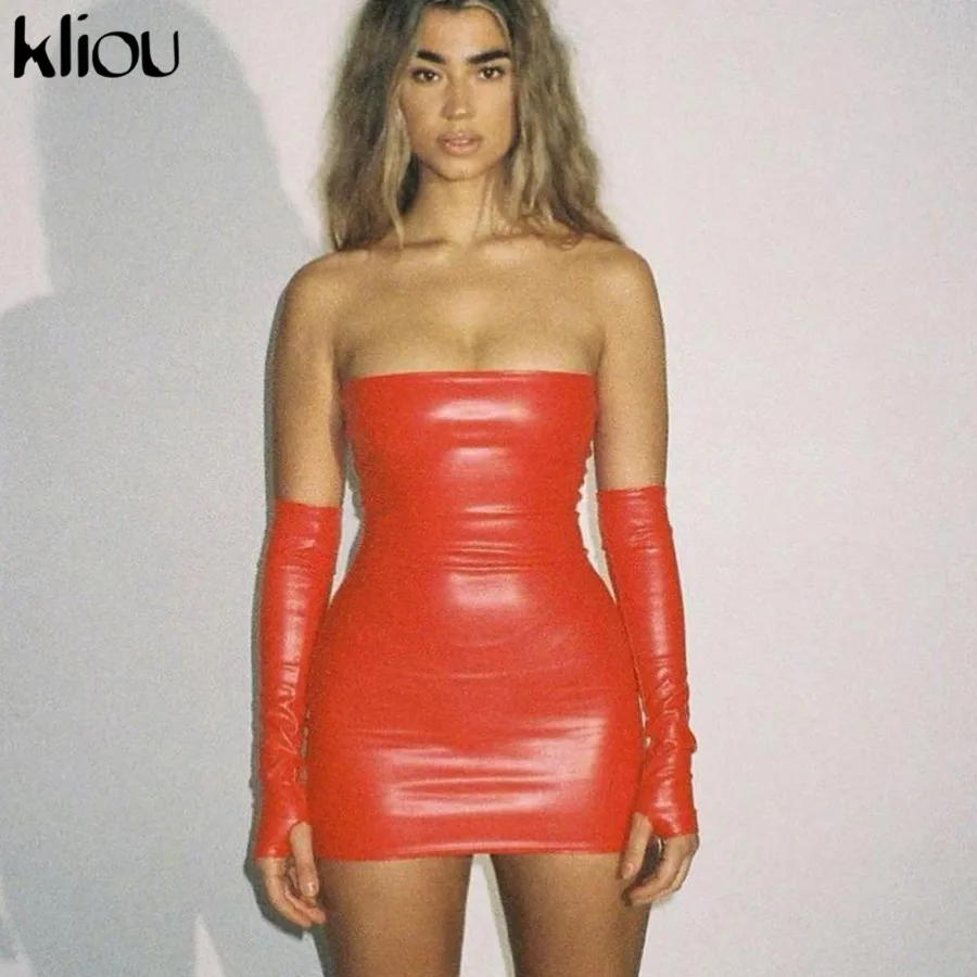 Женское мини-платье с открытой спиной, из искусственной кожи, с перчатками