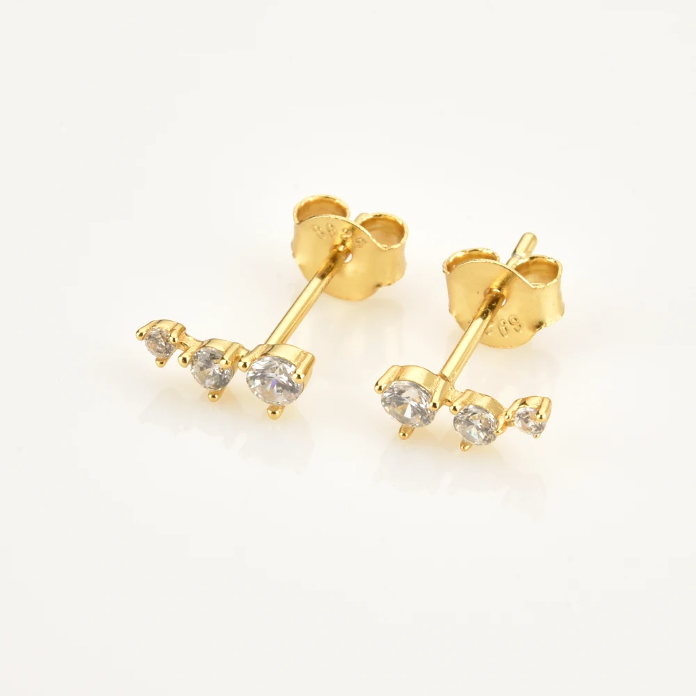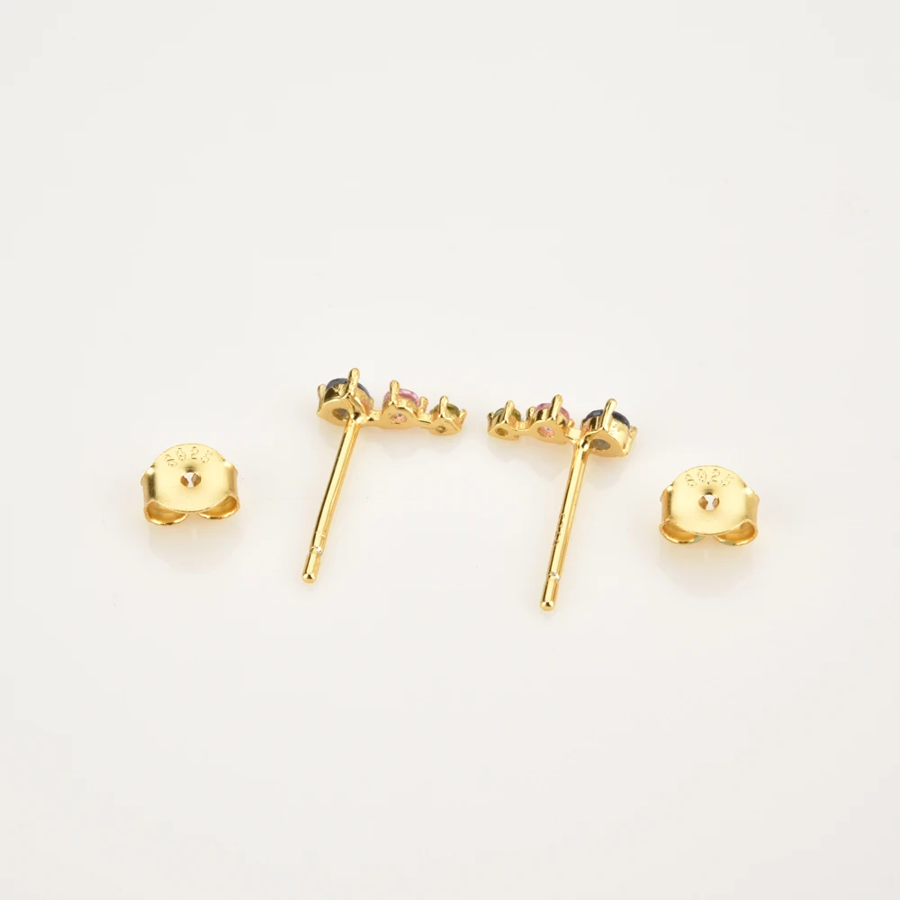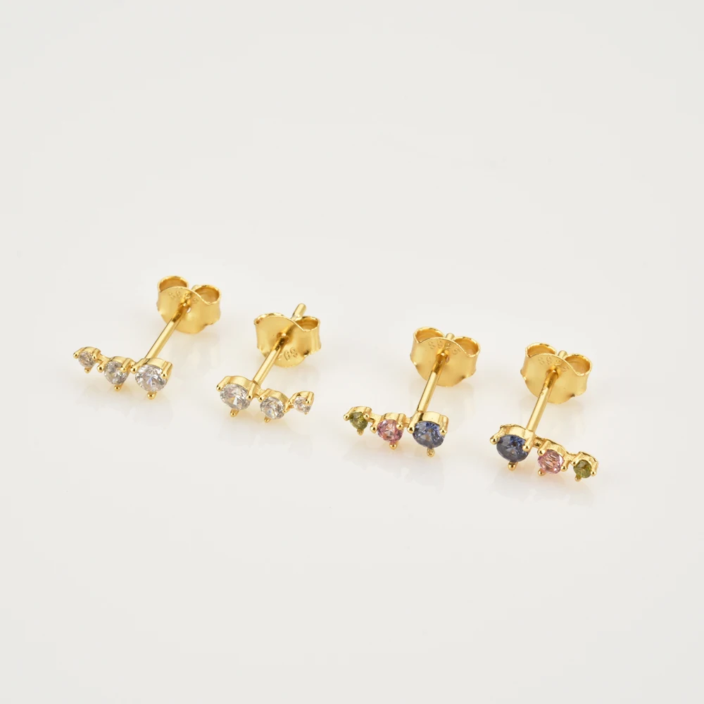 Серьги-гвоздики ANDYWEN, из серебра и золота 925 пробы, с тремя цирконами, радужные, украшения Pendiente