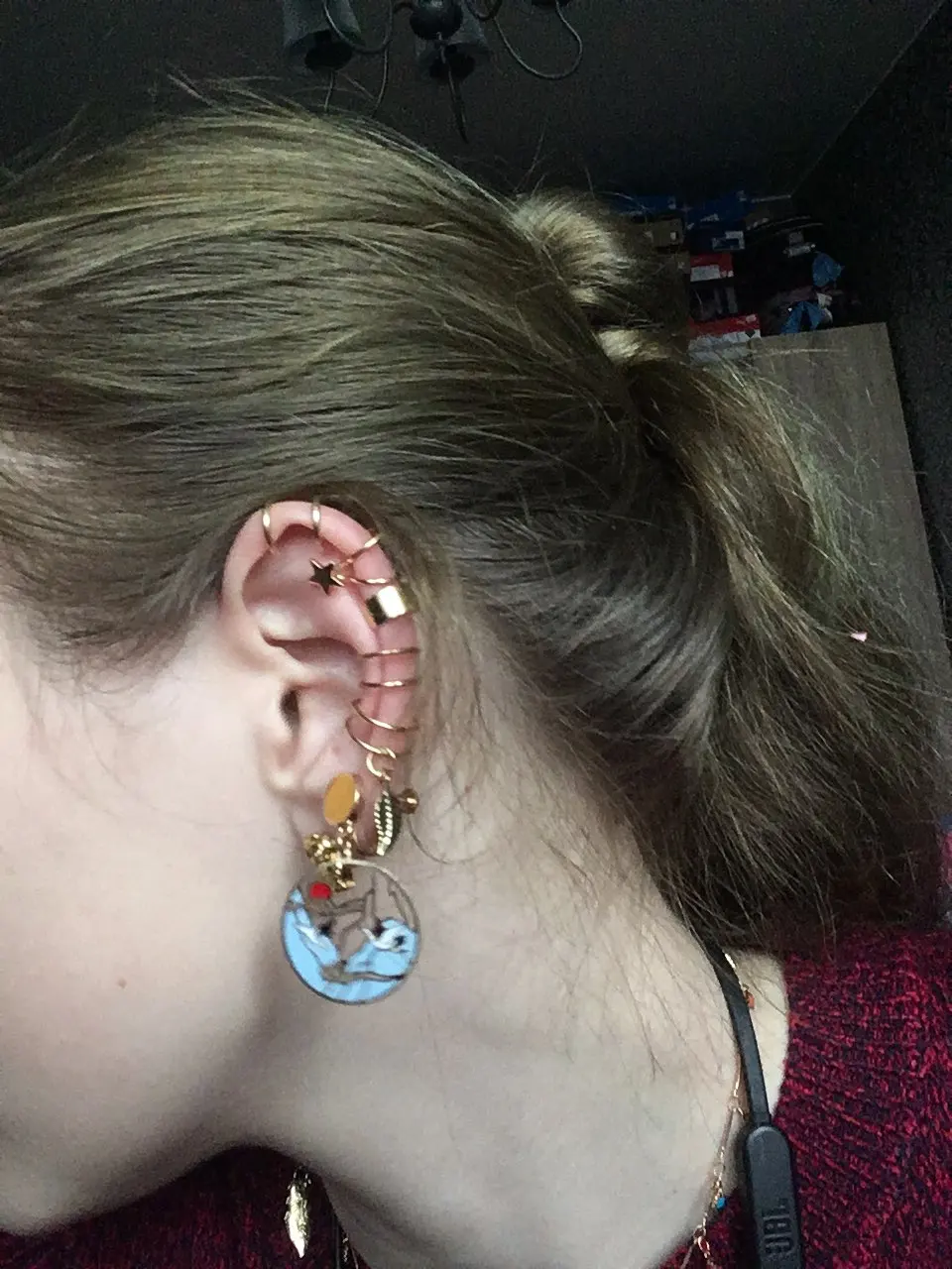 Основная большая серьга Смотрится очень стильно! Остальные не все кафы удобно носить, но тоже можно!в целом классно!