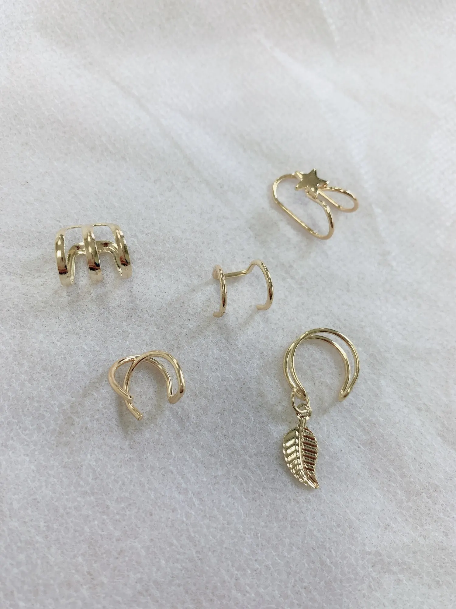 7 шт., модные серьги-клипсы с золотыми листьями звезд для женщин, простые поддельные серьги-каффы, клипсы, аксессуары