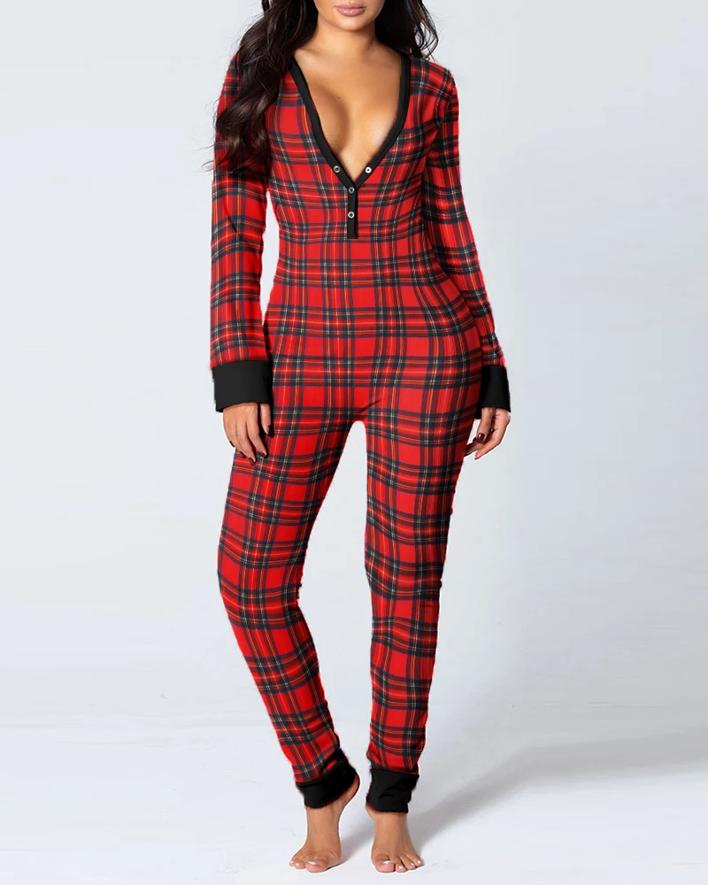 Женская пижама на пуговицах, Повседневная Пижама с принтом рождественской елки, комбинезон на зиму, 2020