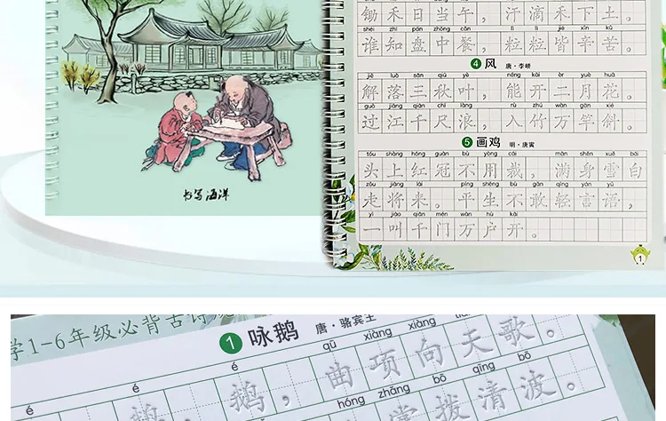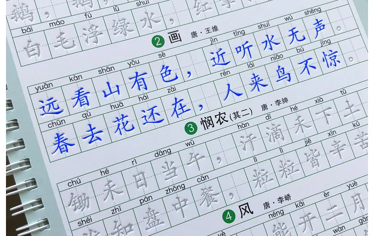 Тетрадь для изучения китайских иероглифов, 3D, древняя поэзия, многоразовая, для начинающих