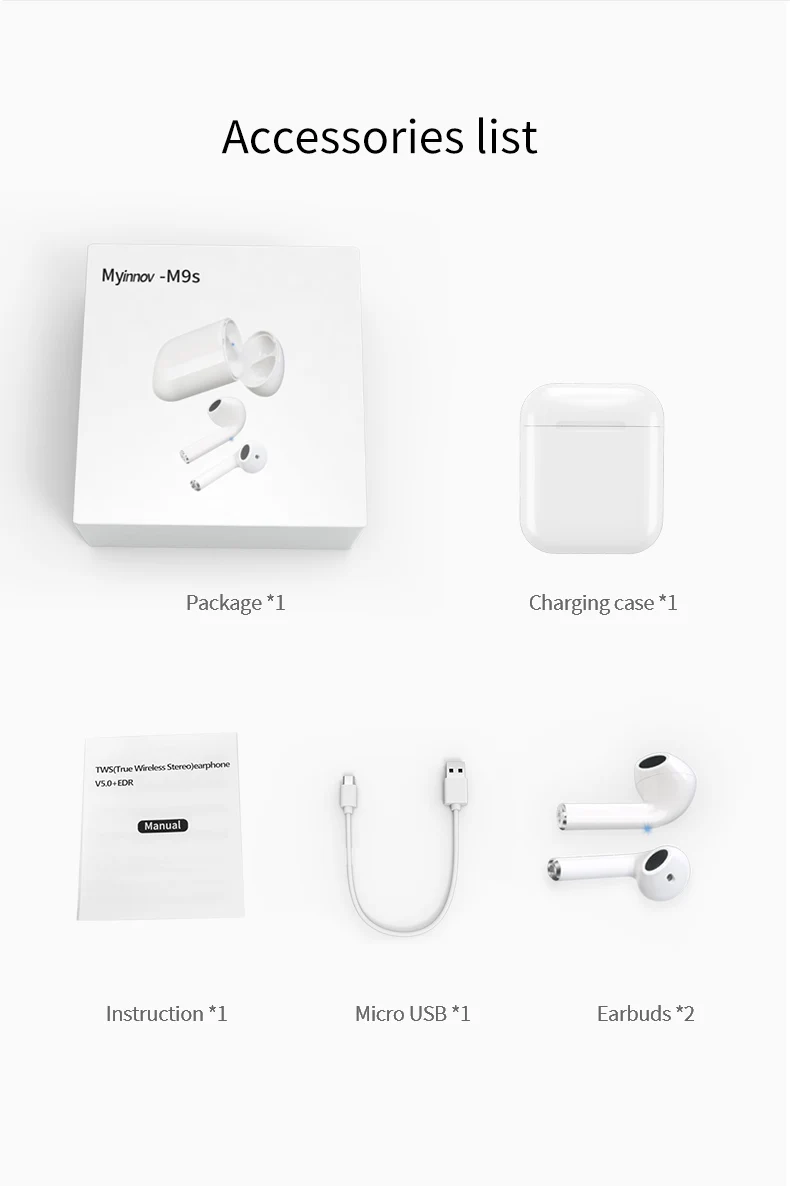 Характеристики: 1. Версия чипа: Jerry 5,0 6936D 2. Функциональная Производительность: Автоматическое включение сопряжения, независимо от мастера и работника, сенсорное управление, хорошее сопряжение, хорошая стабильность и хорошее качество звука. Эксплуатация и использование: два нажатия, чтобы сделать паузу/воспроизведение, тройное нажатие на верхнюю левую песню и следующую правую песню, короткое нажатие в течение 3 секунд, чтобы вызвать функцию голосового ассистента Siri 3. Материал: ABS + PC 4. Эффективное прямое расстояние: 10 метров 5. Рог: импортный композитный алюминиевый кольцевой Рог 6. Батарея: полимерный литиевый аккумулятор, наушники 40 мАч, зарядный отсек 300 мАч 7. Время воспроизведения: одно ухо: 3-4 ч; Противоположное ухо: 3-4 ч 8. Время работы в режиме ожидания: 100 Ч для одного уха, 60 ч для противоположного уха 9. Время полной зарядки: около 1 часа для наушников, около 2 часов для зарядного отсека 10. Цвет: белый