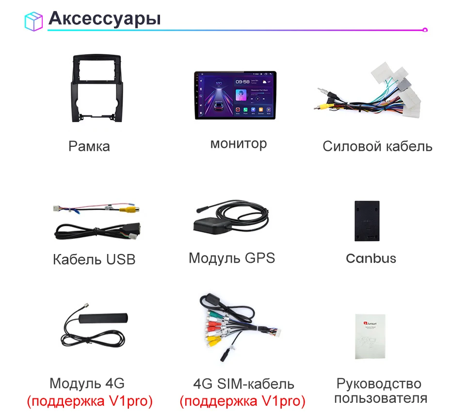 1. PIN к PIN: кабель питания магнитол Junsun - это PIN к PIN, прост в установке;2. Встроенный Carplay / Android Auto: поддержка версии V1Pro, просто используйте телефонный кабель, подключите его, стабильный и простой в использовании;(V1 поддерживает только Android Auto, но необходимо купить; V1C не поддерживает)3. Поддержка подголовника: поддержка только версии Junsun V1;