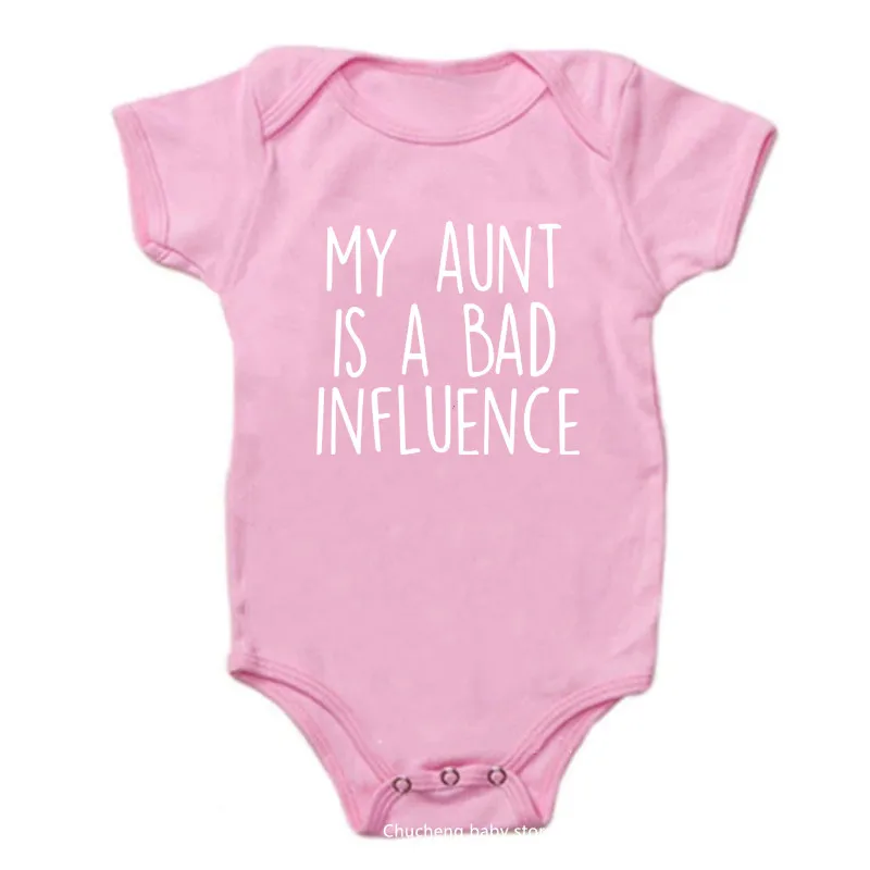 Тетей плохой влияние Смешные детское боди для новорожденных, Милая футболка с коротким рукавом для маленьких мальчиков девочка Onesies комбинезон для маленьких детей; Одежда в подарок;