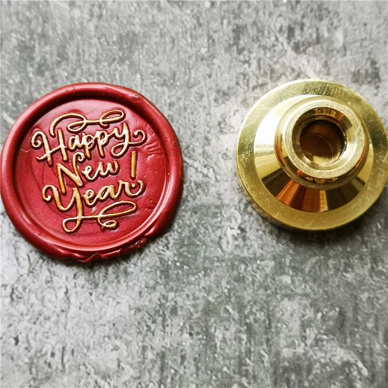 Счастливый Новый год набор восковых печатей с запечатывания марки благословение письмо штамп для свадебного приглашения Медь сургучная печать головка штемпеля с деревянной ручкой