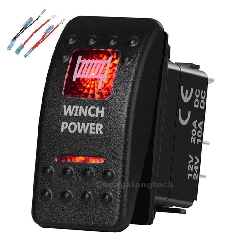Кулисный Переключатель питания с лебедкой, красный светодиод, 5P, однополюсный, водонепроницаемый, для автомобиля, лодки, 12 В24 В + перемычка набор проводов