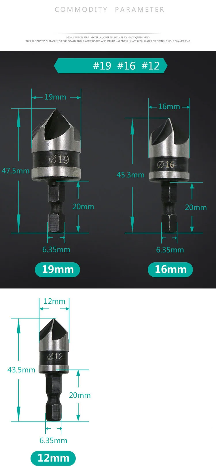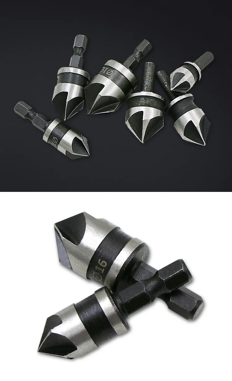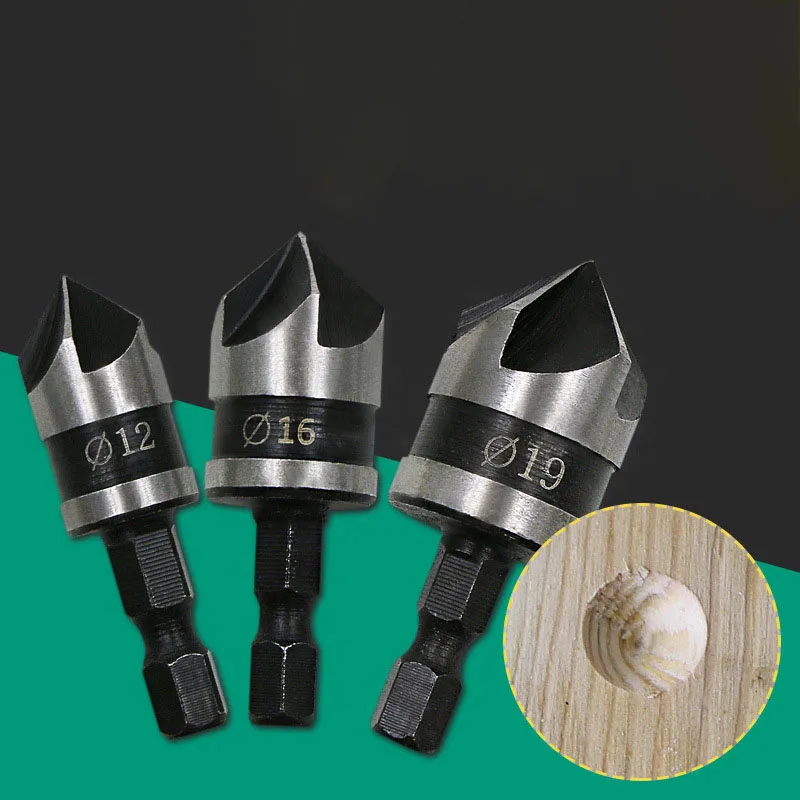 Сверла для зенковки с шестигранным хвостовиком, 90 градусов, 14 дюйма, 5 канавок, 12-19 мм, набор инструментов для обработки дерева DT6