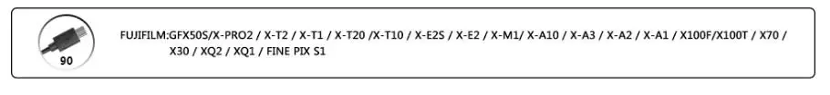 Fujiflm: GFX50S / X-PRO2 / X-T2 / X-T1 / X-T20 / X-T10 / X-E2S / X-E2 / X-M1 / X-A10 / X-A1 / X100F / X100T / X70 / X30 / XQ2 / XQ1 / FINE PIX S1