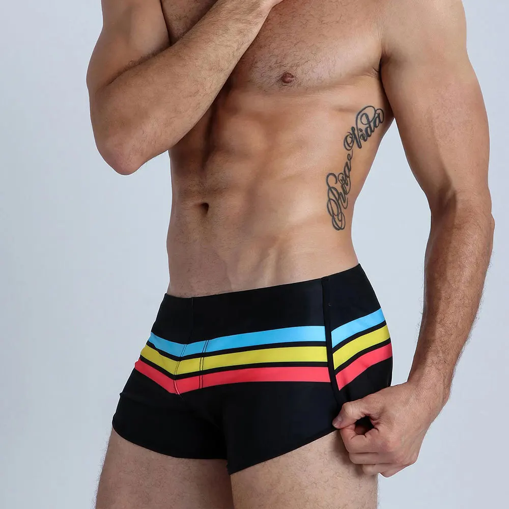 Одноцветные полосатые шорты-боксеры с низкой талией для купания, пляжная одежда для серфинга, летние мужские плавки, сексуальные пляжные шорты для плавания, 2021
