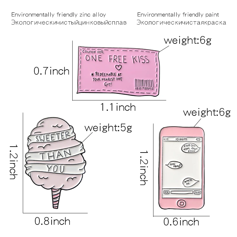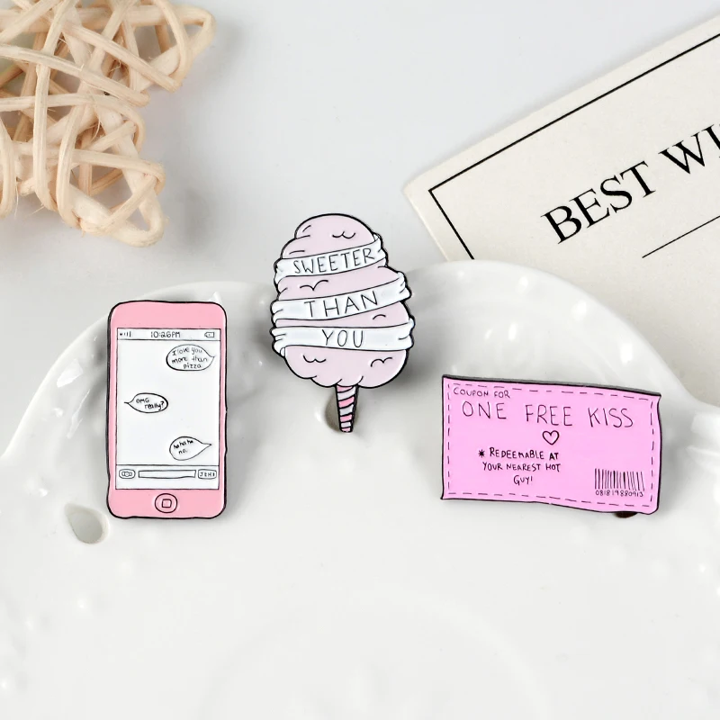 Эмалированные броши на булавке ONE FREE KISS Ticket Sweeter Candyfloss, броши на воротник джинсовой рубашки, милые розовые украшения в подарок