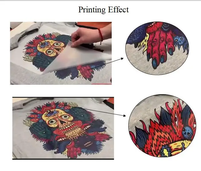-DTF печать имеет яркие цвета, широкую цветовую гамму, сильные белые чернила, скрывающие мощность, и хорошую белизну.