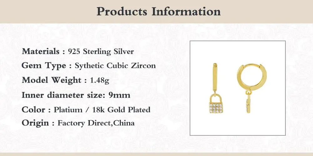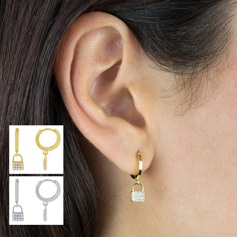 GS 925 Стерлинговое Серебро циркон серьги с замком замок кулон золото Висячие петля Висячие серьги для женщин Подарки Панк ювелирные изделия