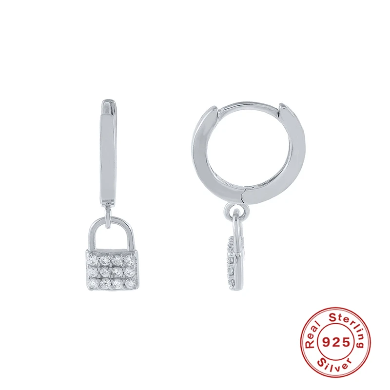 Aide, 925 пробы, серебро, циркон, серьги с замком, висячие серьги с замком, золотые Висячие серьги, для мужчин и женщин, подарки, ювелирные изделия в стиле панк