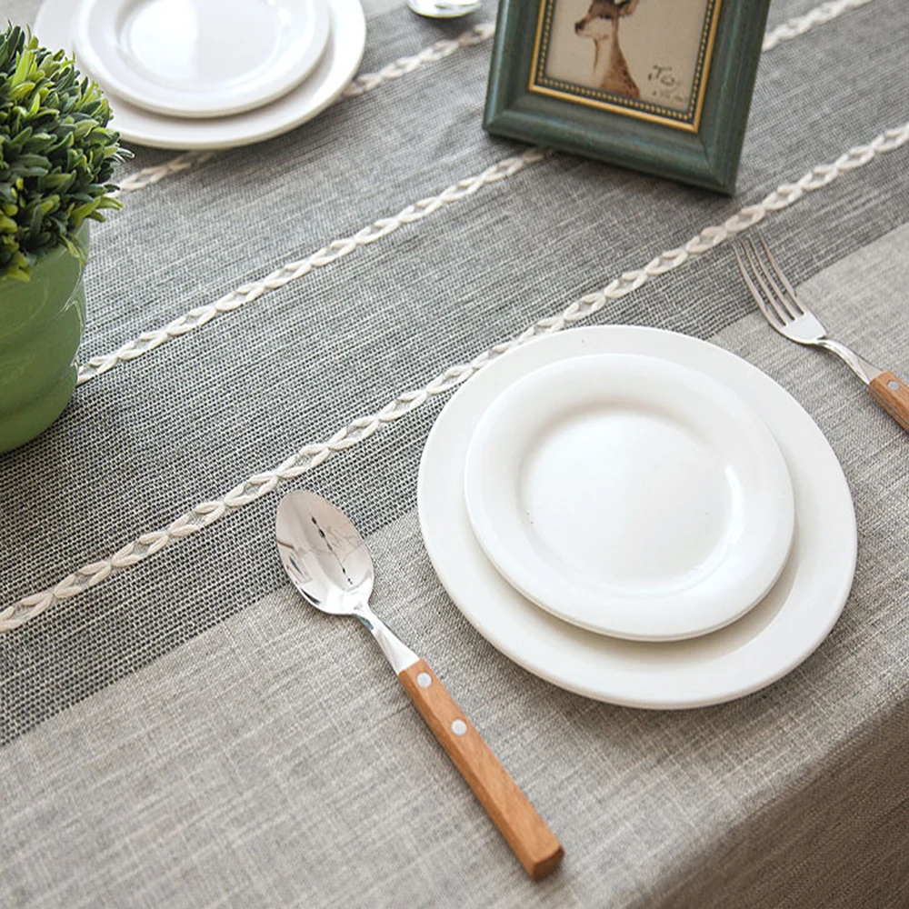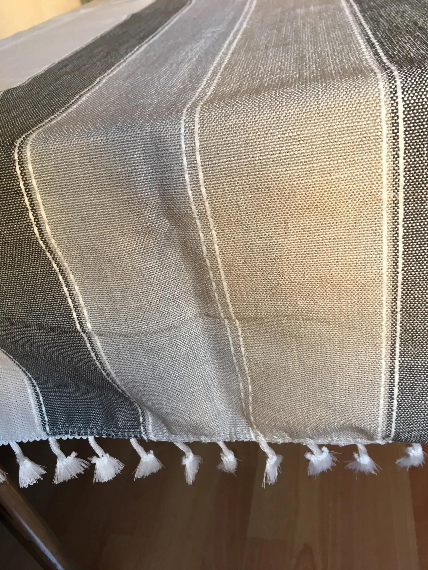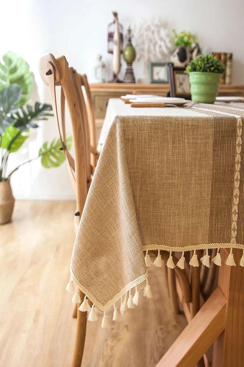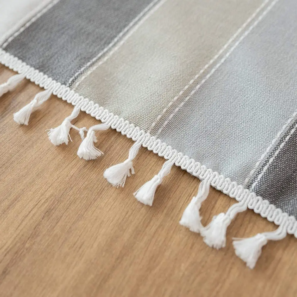 Черно-серые скатерти из хлопка и льна, полосатые скатерти с полосатыми кисточками, украшение кухонного стола