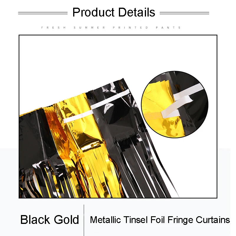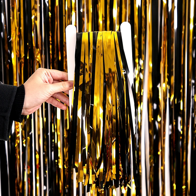 Черные золотые фоновые занавески, металлическая мишура, занавески с бахромой из фольги для девичника, свадьбы, украшение для новогодней и рождественской вечеринки