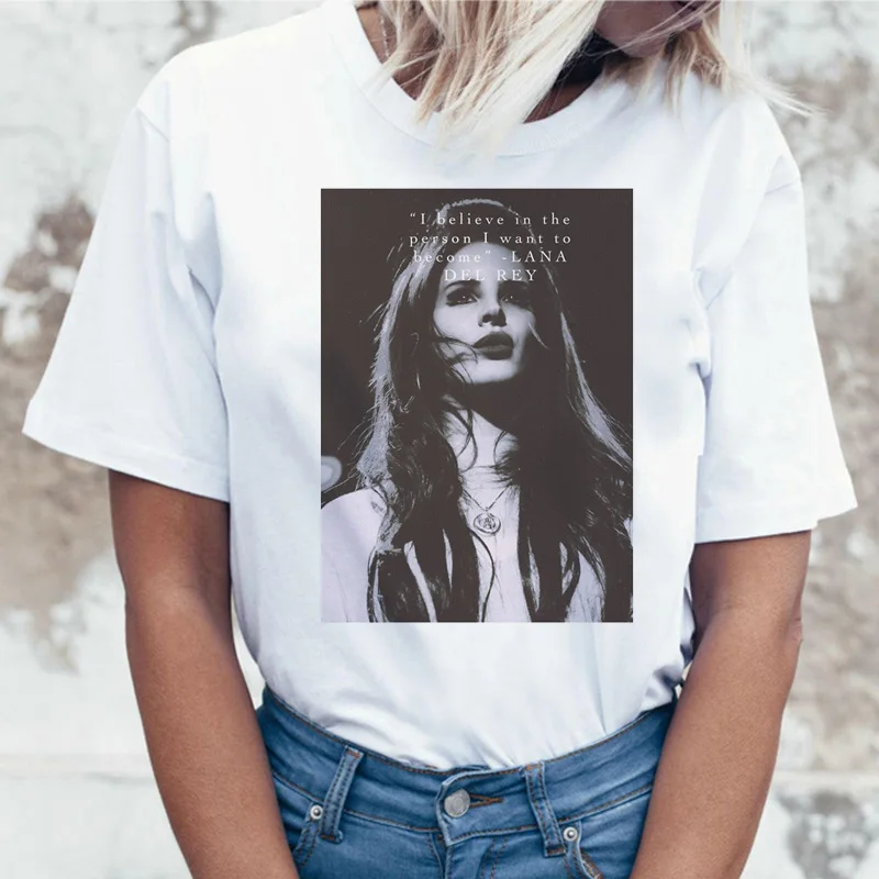 Футболка с принтом Ланы Дель Рей, Корейская женская футболка с забавным мультяшным принтом, одежда в стиле Харадзюку, топ Ullzang, футболка