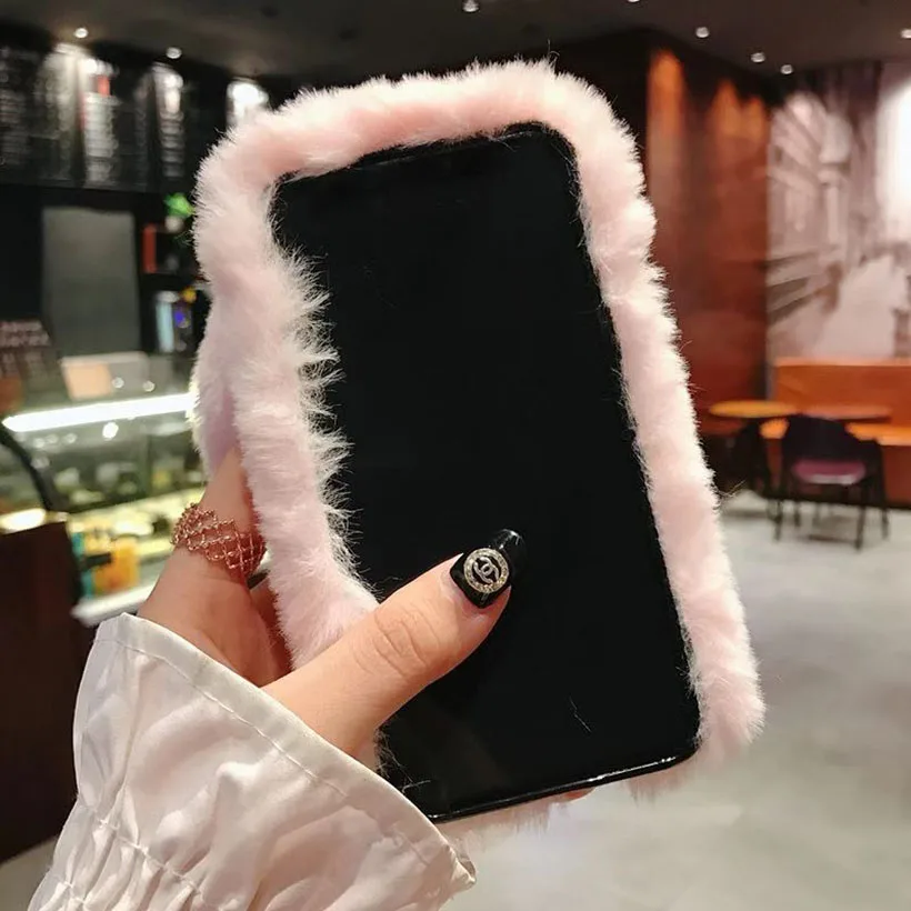 Теплый чехол из кроличьего меха для iPhone 7 8 Plus X XS Max XR Sam...
