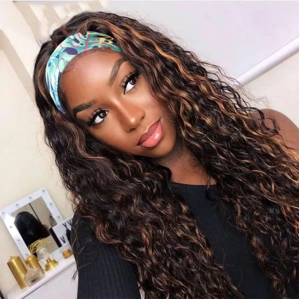 Водная волна парик с головной повязкой парики из натуральных волос ...