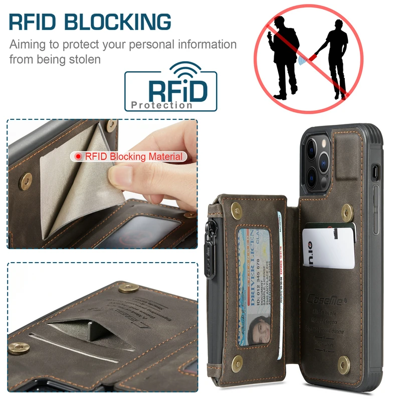 Кожаный чехол-накладка CaseMe в стиле ретро для iPhone 13 12 11 Pro Max, бумажник с кармашком для карт для iPhone SE12 mini 11 X S XR 7 8, задняя крышка на молнии