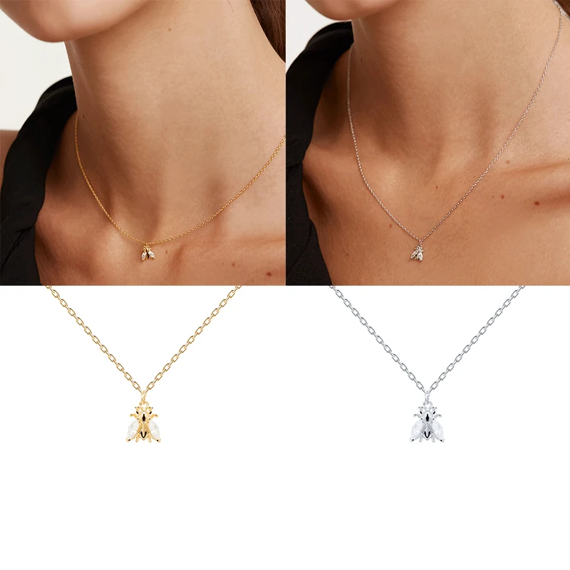 GS 925 стерлингового серебра в виде симпатичных животных пчела Подвески Колье для женщин, хорошее ювелирное изделие, браслеты с подвесками ключица цепочка ожерелье вечерние подарок