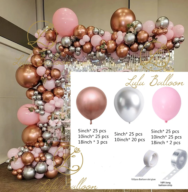 152 шт. воздушный шар, цвет под хром, розовое золото, серебро, для свадьбы, дня рождения, фотолатексный шар