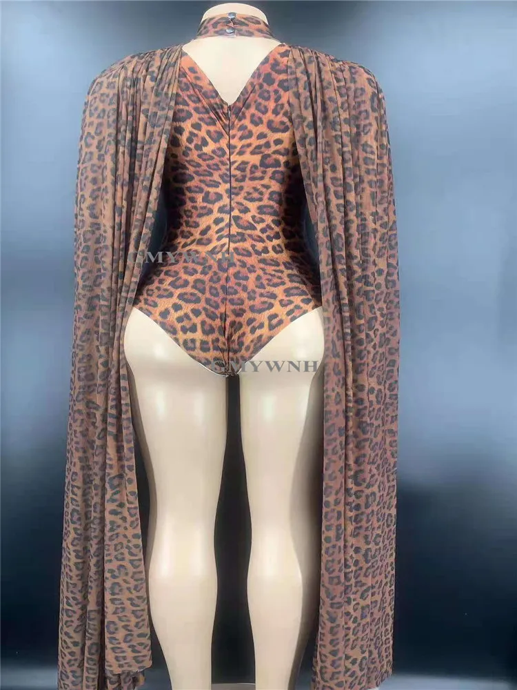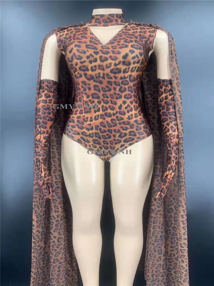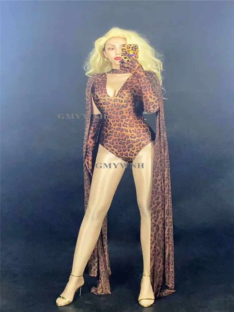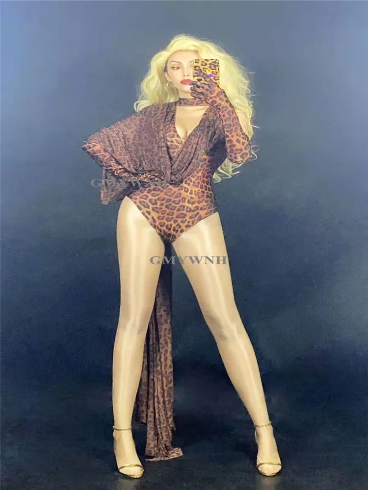 Q124 певица Плотный Комбинезон для танца с шестом плащ леопарда Club лазерное шоу костюм высокие эластичные пикантные сиамские Выходные туфли на выпускной Подиум Dj