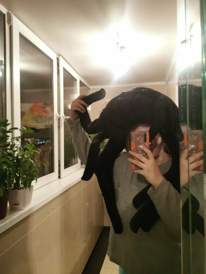 Игрушка плюшевый огромный паук, крутая черная подушка с пауком, мяг...