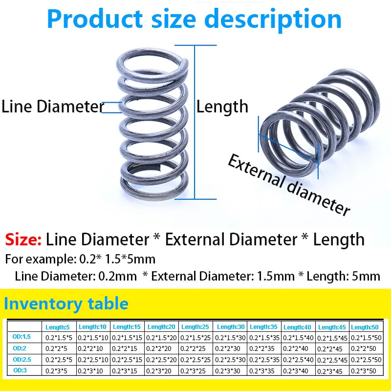 Сжатая пружина ротора возвратная пружина Давление Весенняя распродажа магазине линия Диаметр 0,2 мм, внешняя Диаметр 1,5-3 мм