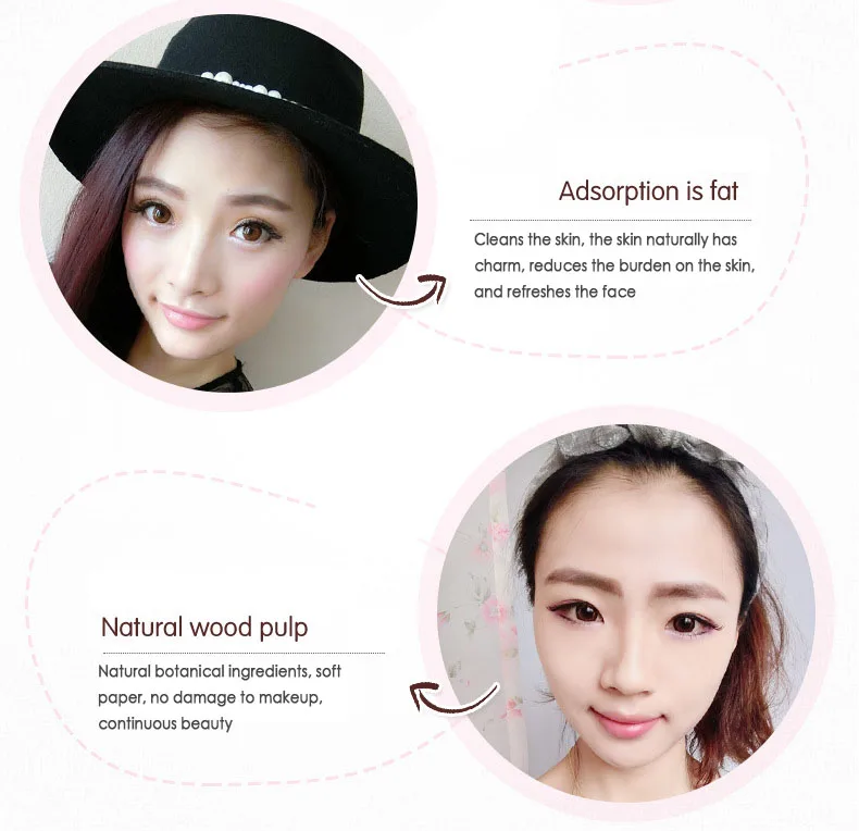 Изготовлено из 100% сырой древесной массы, бумага мягкая, а поверхность бумаги гладкая. Он может легко поглощать избыток масла в коже, сбалансировать масло кожи, и кожа не легко блокировать, замедлить нагрузку на кожу, очистить и очистить, И не легко повредить кожу.