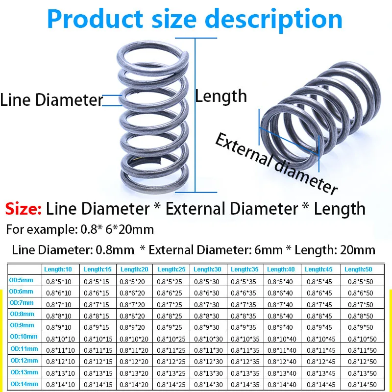 Ротор Давление Весна сжатая пружина большие и маленькие Весенняя распродажа магазине линия Диаметр 0,8 мм, внешняя Диаметр 5-14 мм 10 шт