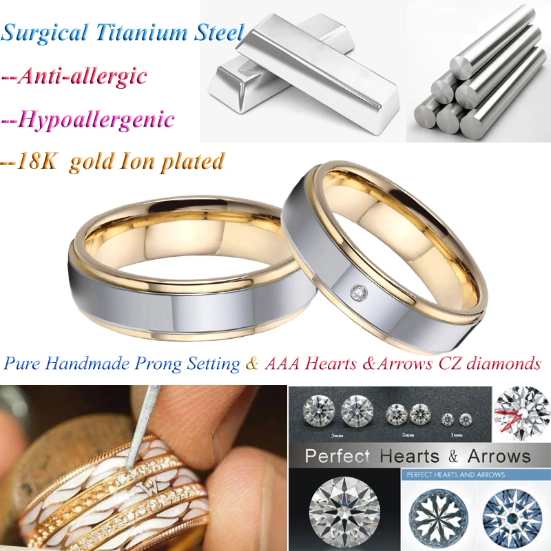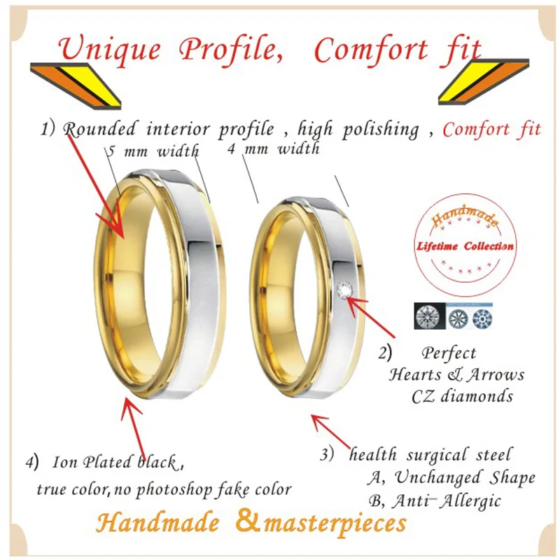 Золотое титановое кольцо для мужчин и женщин, 1 пара, для свадьбы, ...